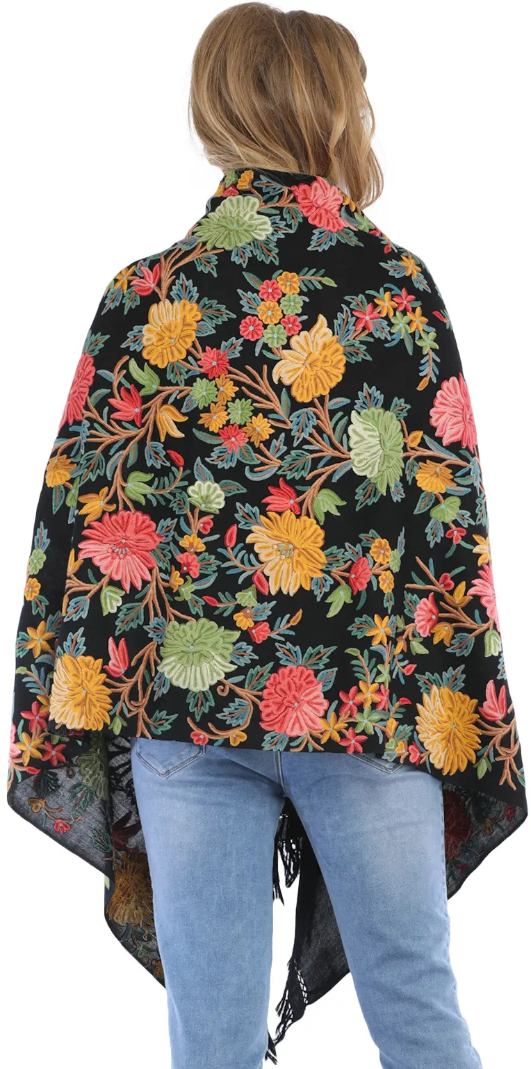 Stole from Kashmir with Aari Hand-Embroidered Flowers