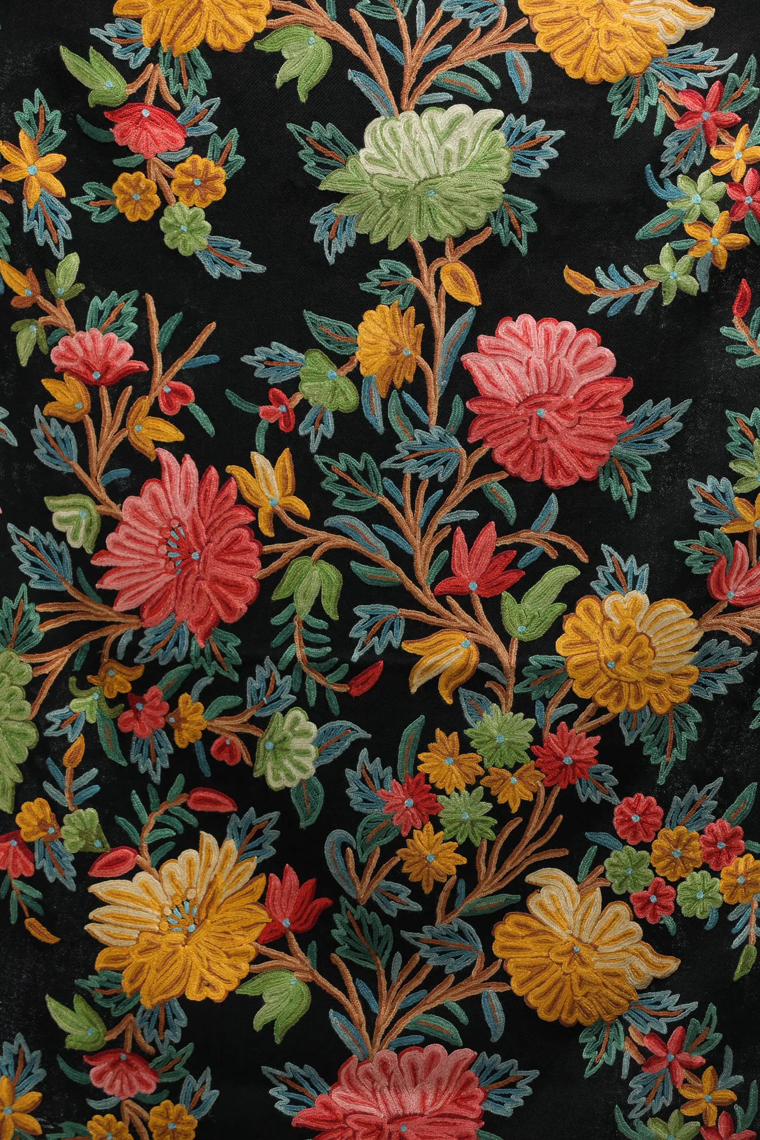Stole from Kashmir with Aari Hand-Embroidered Bouquet of Flowers