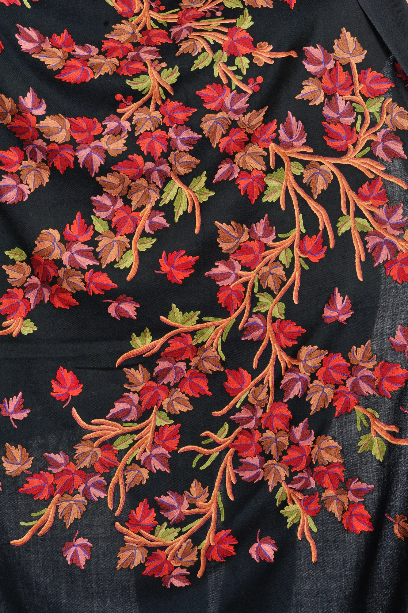 Stole from Kashmir with Aari-Embroidered Maple Leaves by Hand