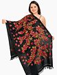 Jet-Black Kashmiri Stole with Hand-Embroidered Maple Leaves