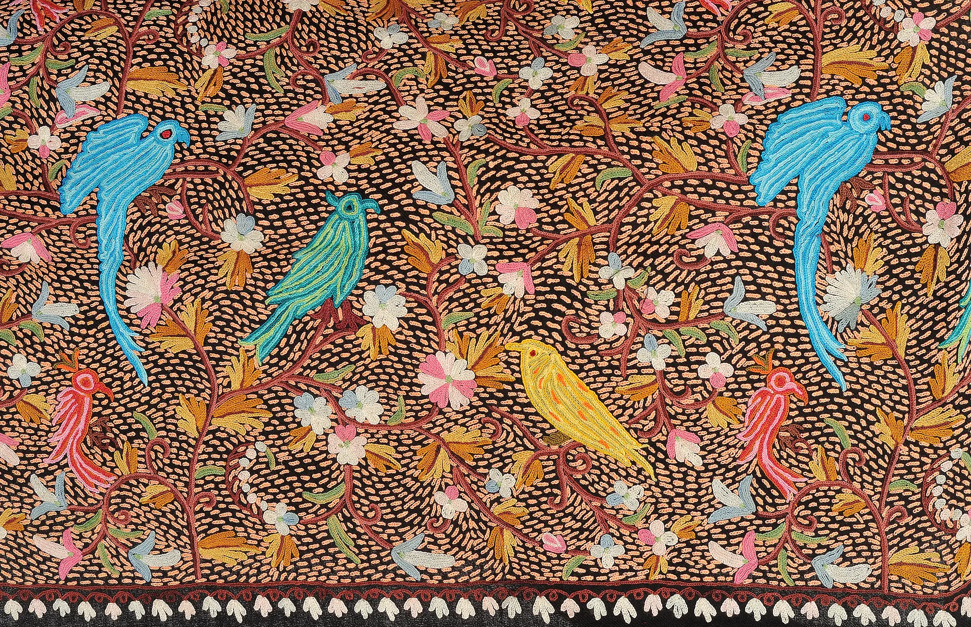 Phantom-Black Stole from Kashmir with Aari-Hand Embroidered Chinar Tree