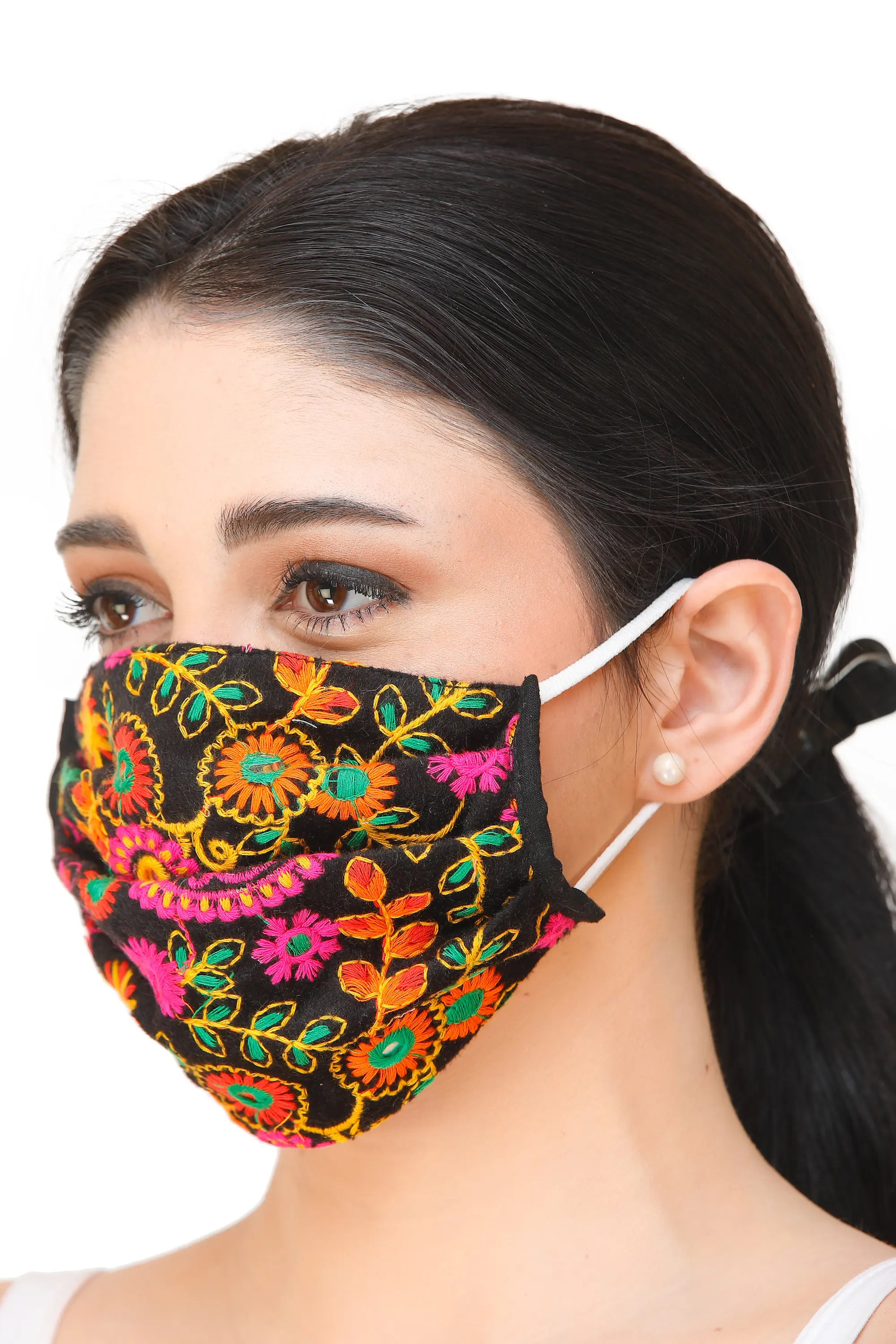 Fashion Two-ply Mask with Lukhnavi Chikan Embroidery and Cotton-Backing and Ear Loops