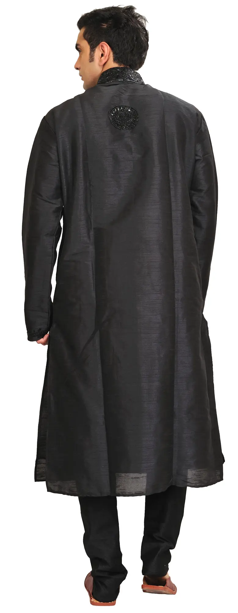 Caviar-Black Plain Shawl from Kullu with Kinnauri Woven Border