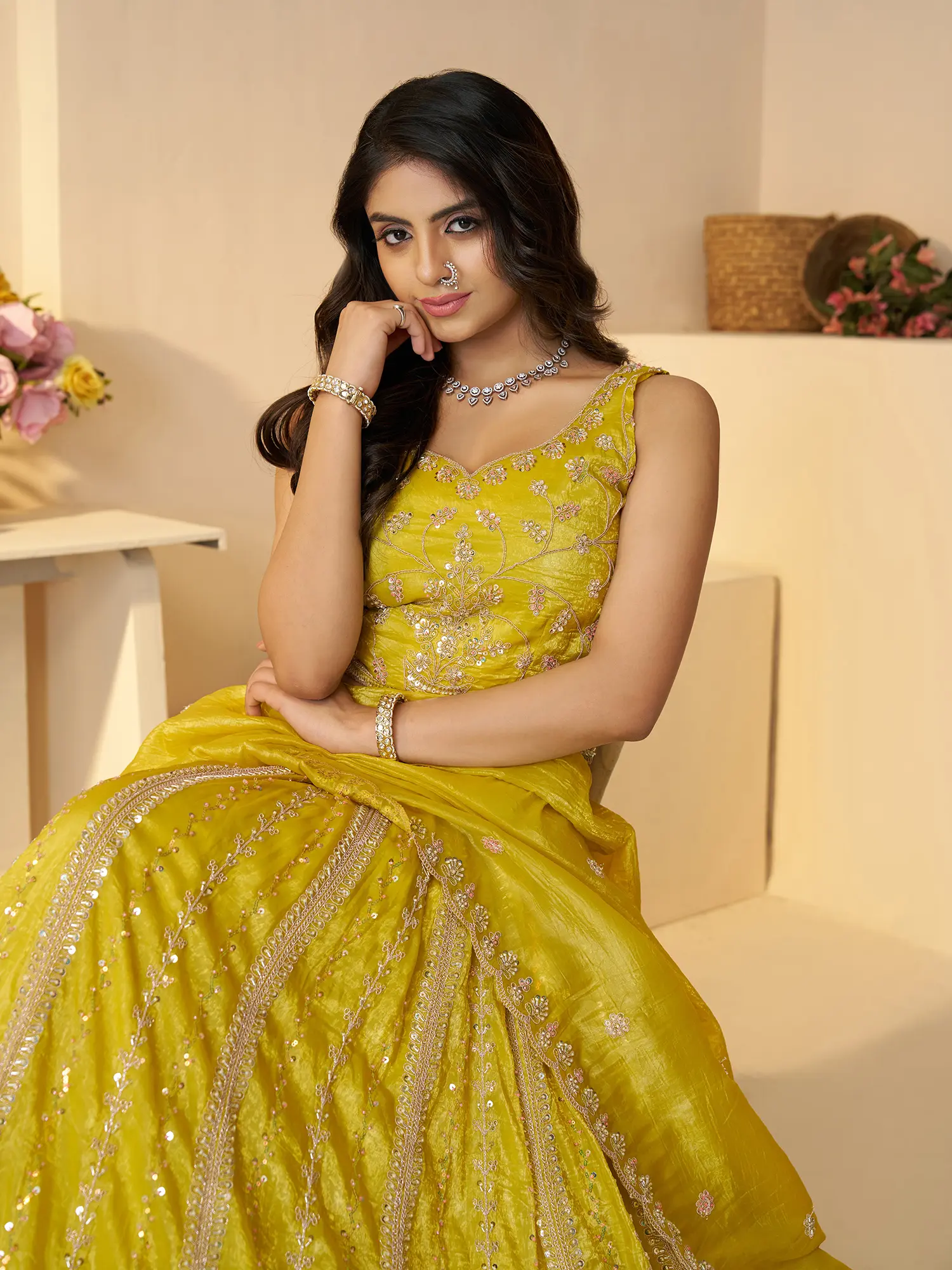 Floral Heavy Embroidery And Sequins Work Embellished Silk Lehenga Choli With Soft Net Dupatta