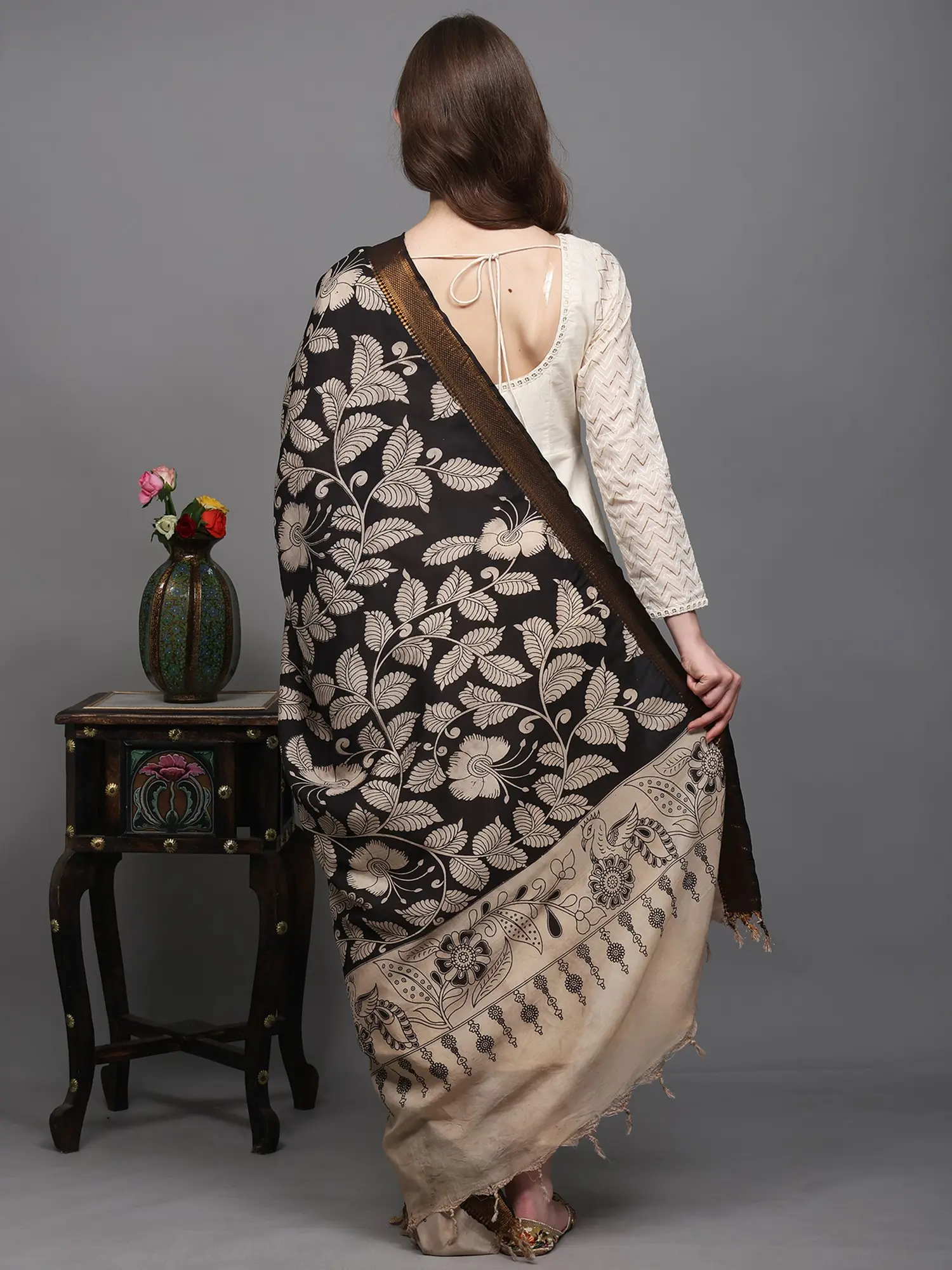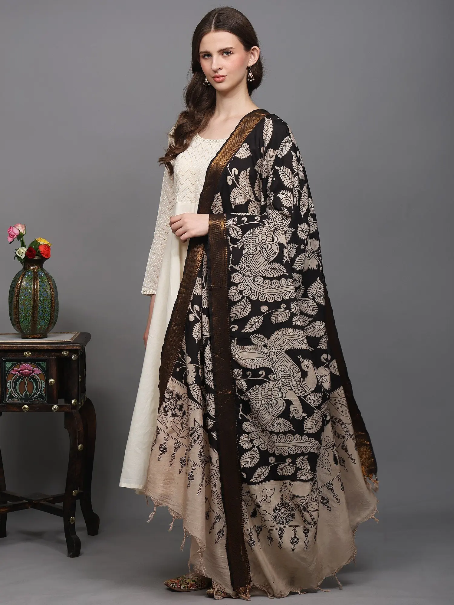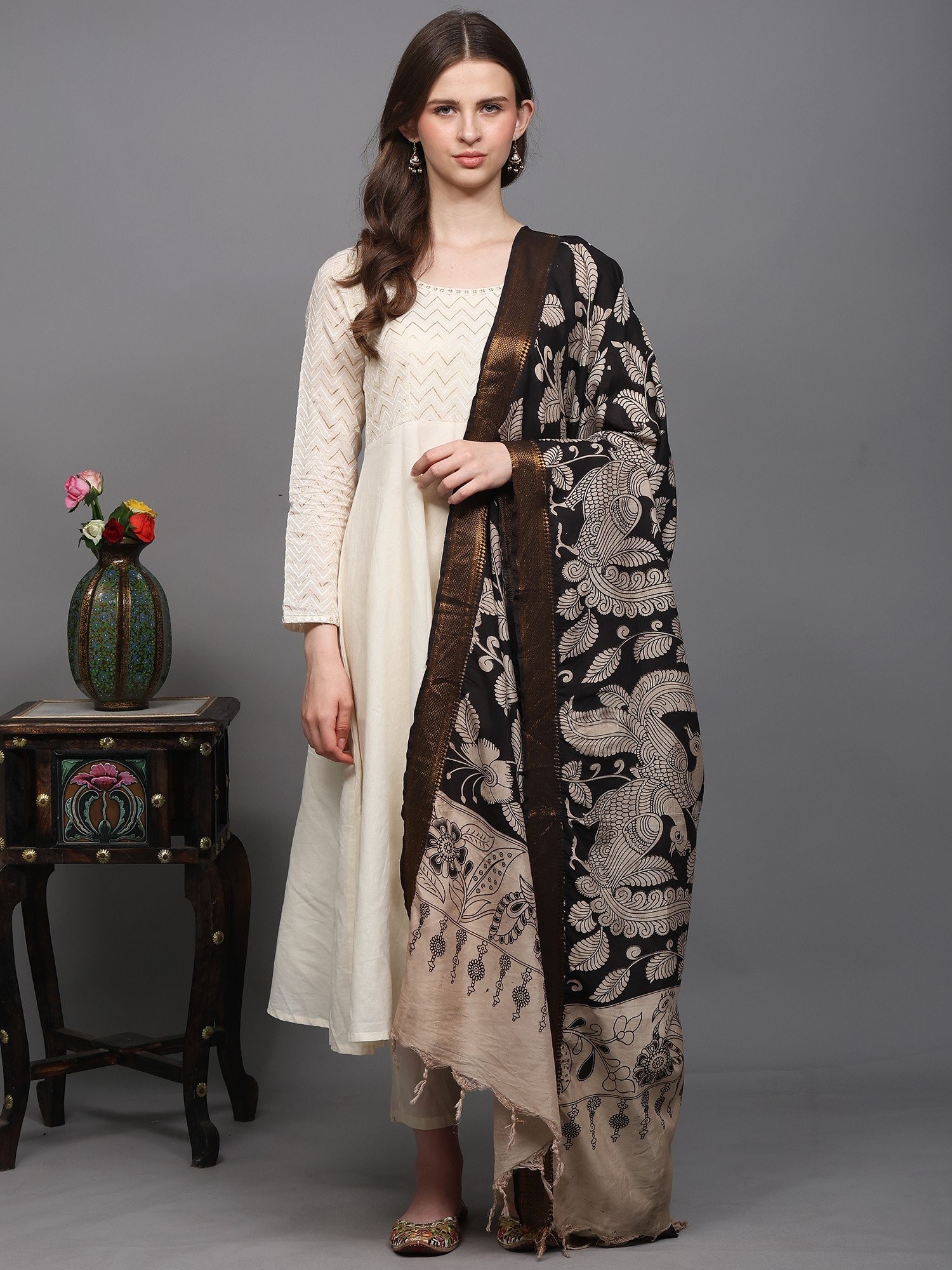 Long Gown with Kalamkari Printed Goddess and Slit Shoulders