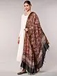 White-Pepper Flower Vine Printed Kalamkari Dupatta from Telangana with Zari Border