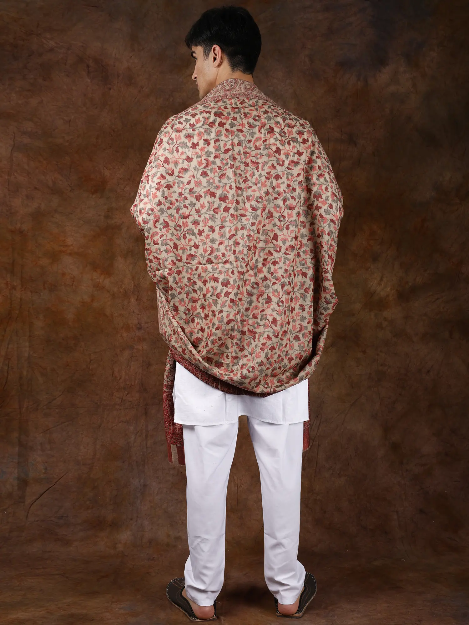 Pure Wool Kani Jamawar Shawl from Amritsar with Embroidered Flowers and Paisleys