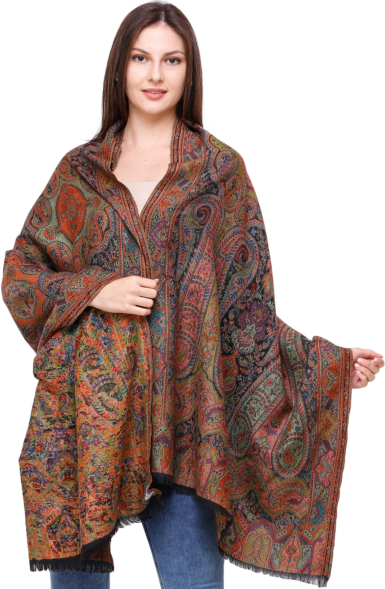 Kani Jamawar Wool Shawl with Woven Flowers and Paisleys