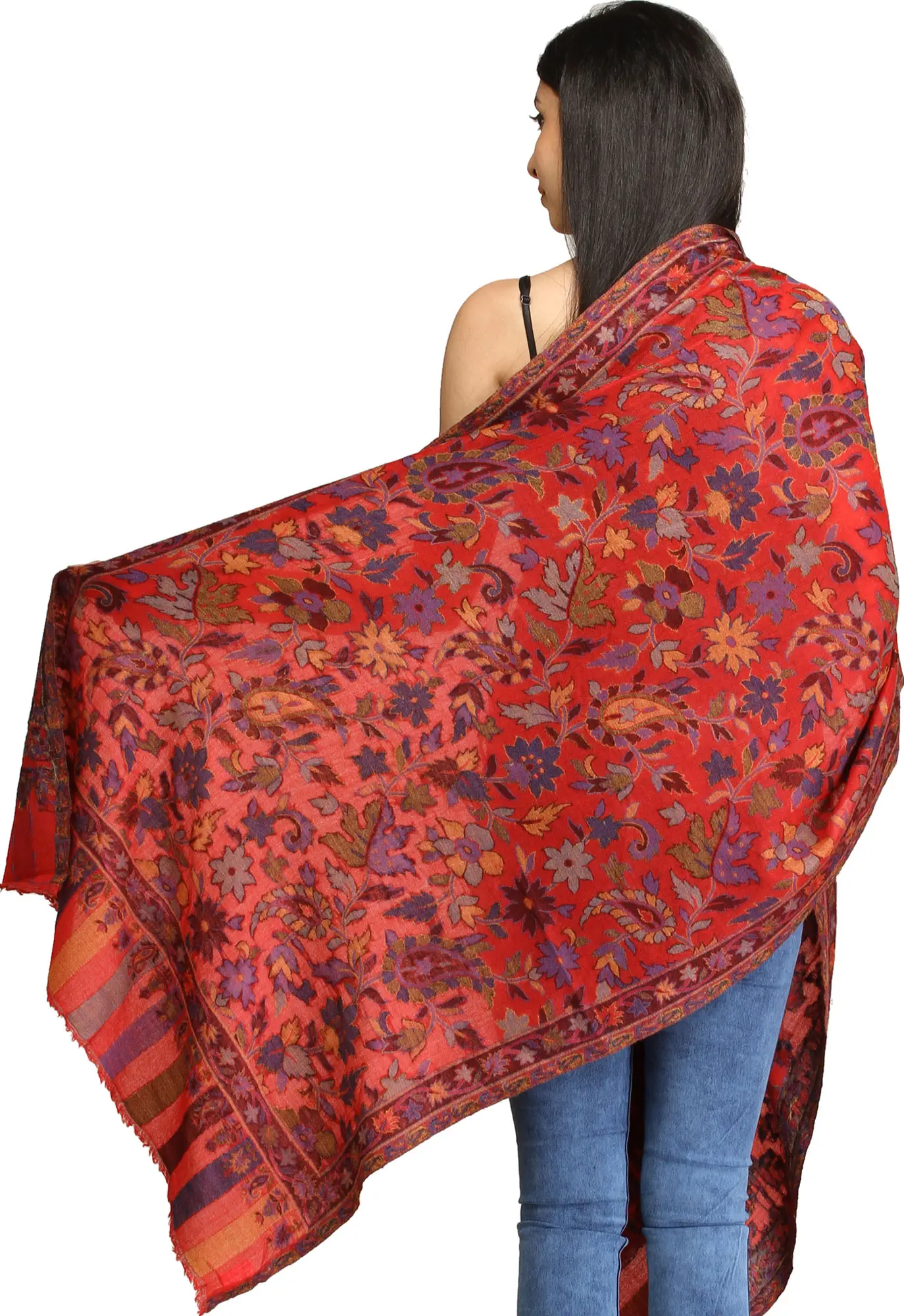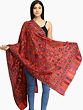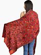 Crimson Kani Shawl Featuring Reversible Paisley Motifs