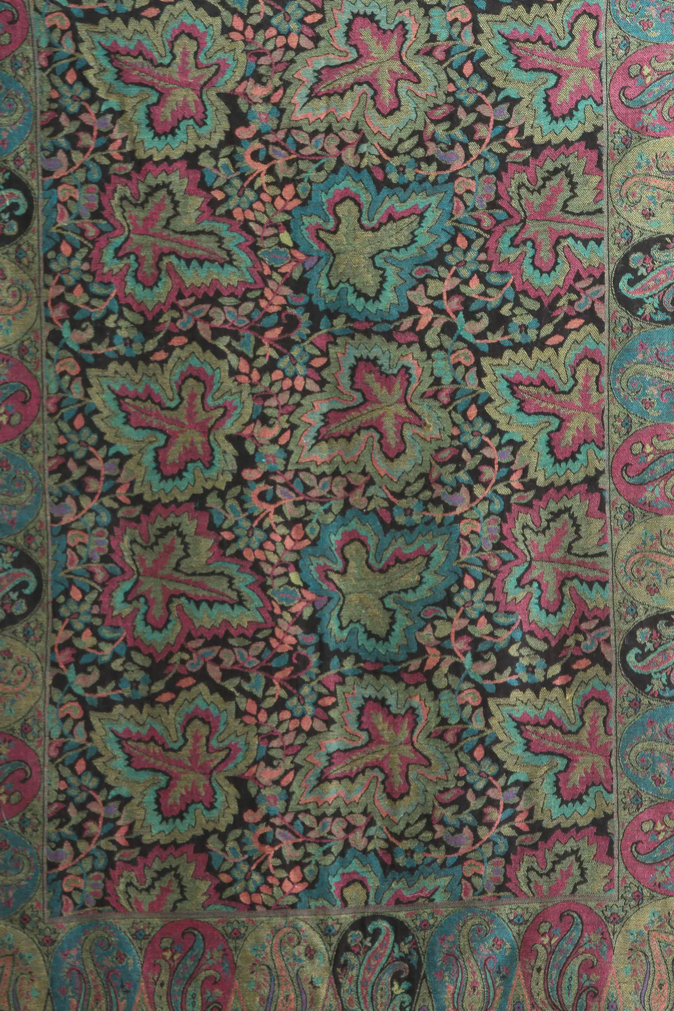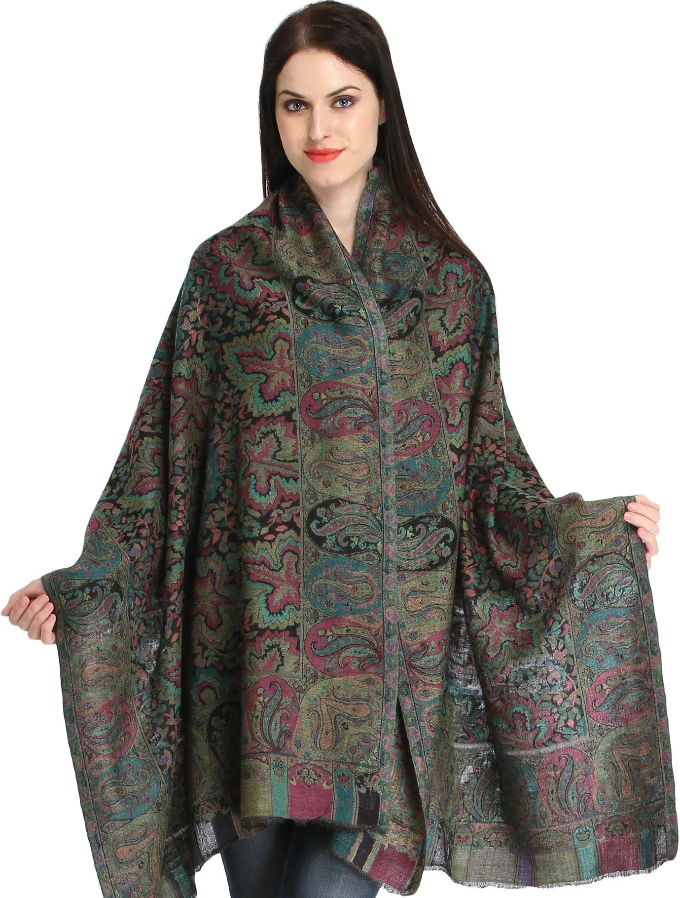 Antique Green Reversible Kani Stole with Woven Paisleys and Flowers