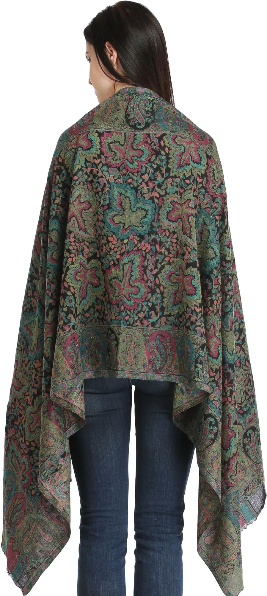 Black Reversible Pure Wool Stole with Kani Weave Floral Palla