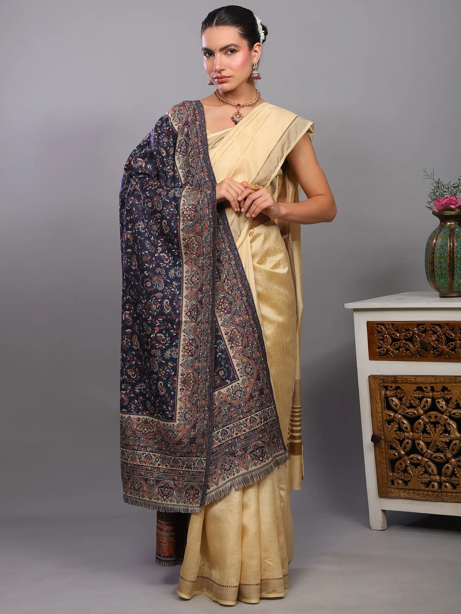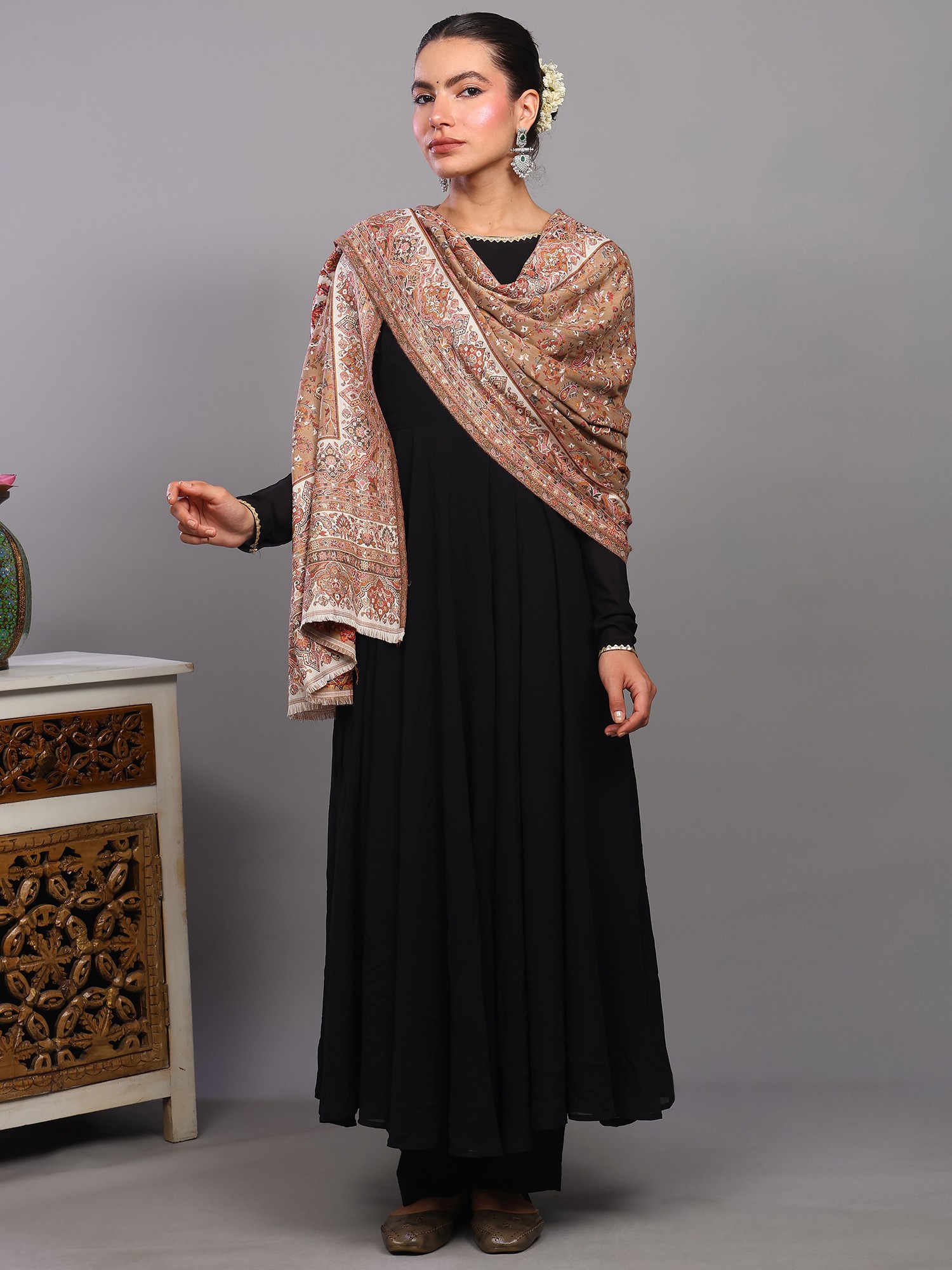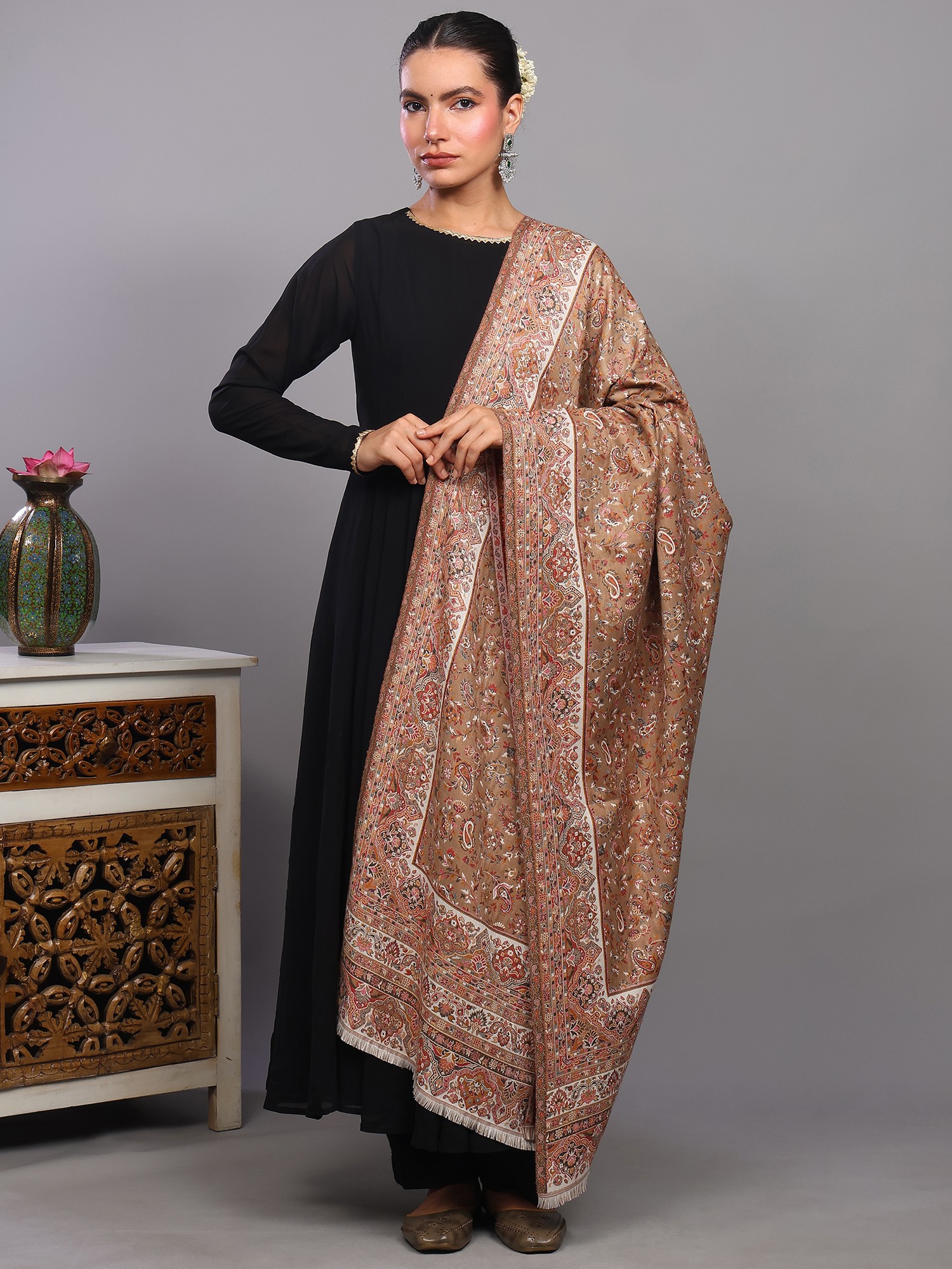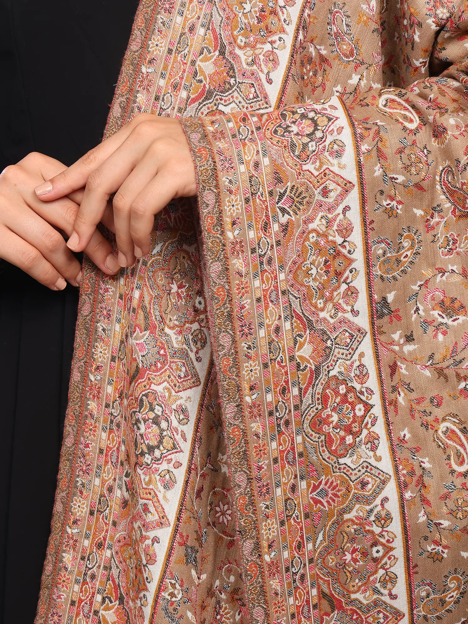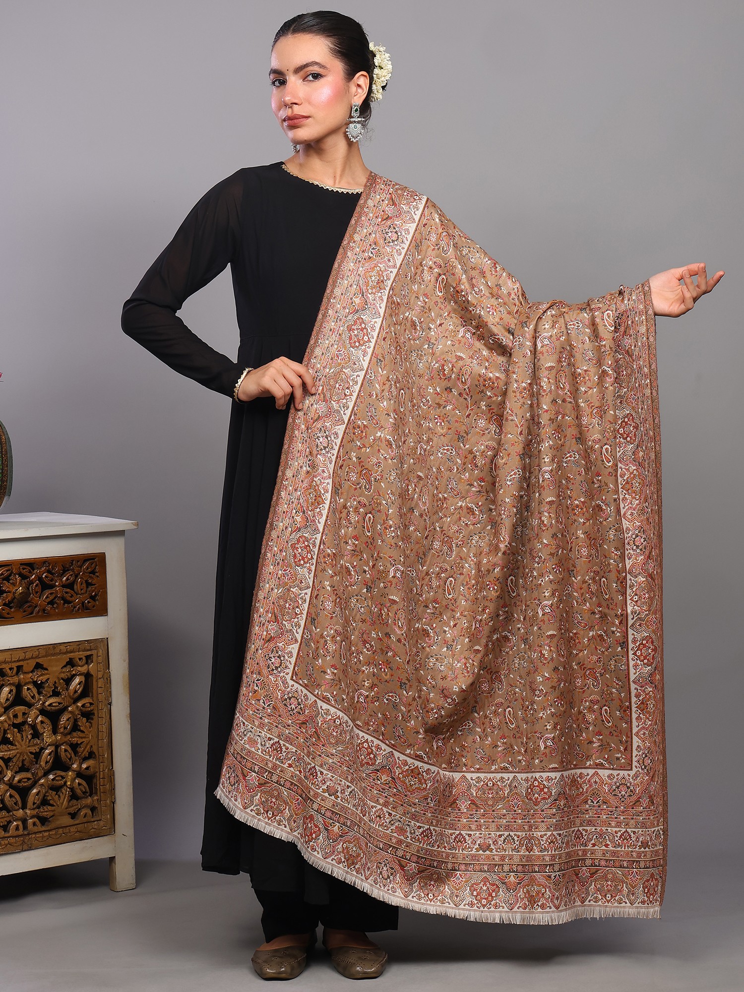 Kani Jamawar Stole from Amritsar with Woven Florals and Paisleys