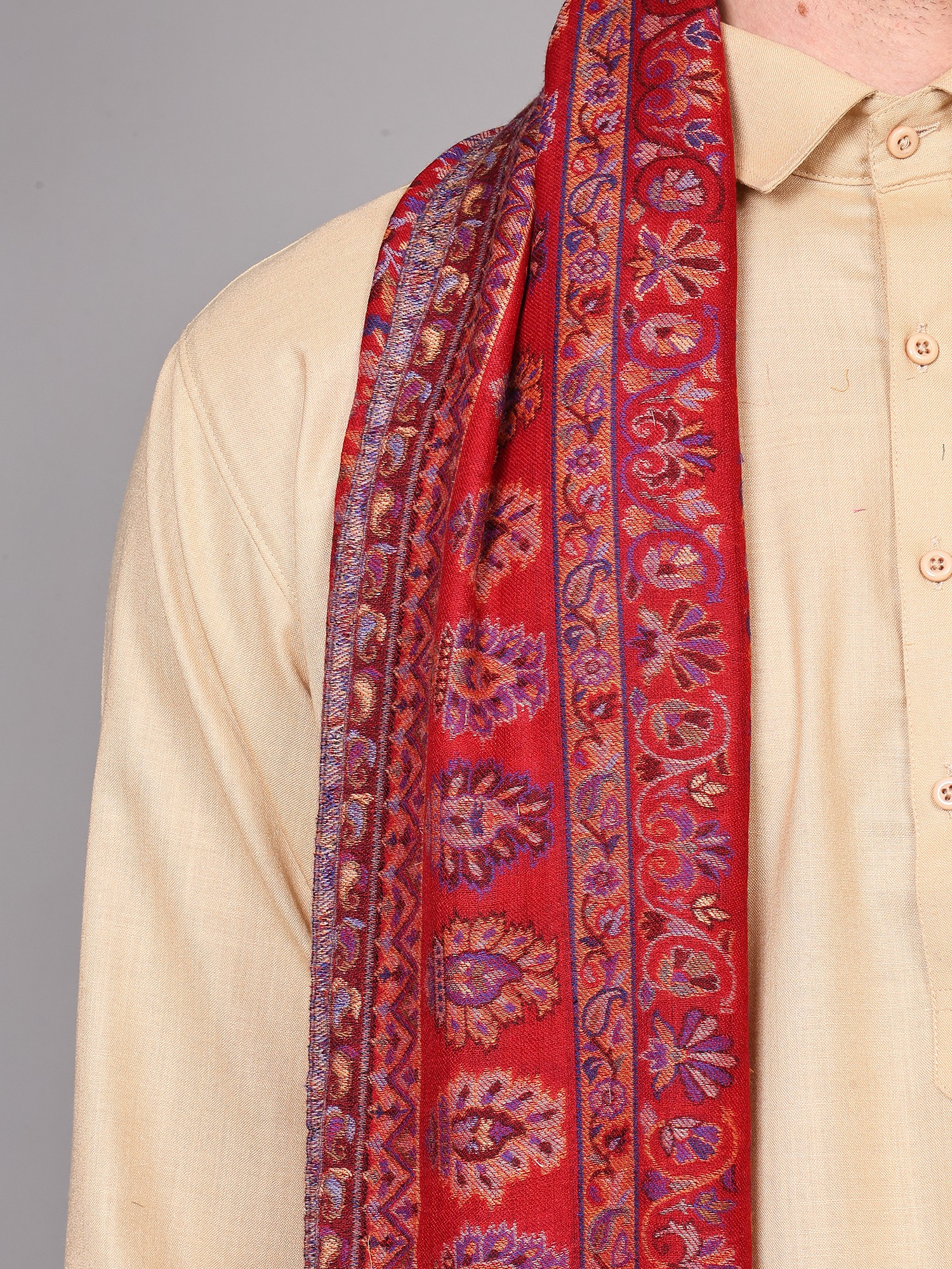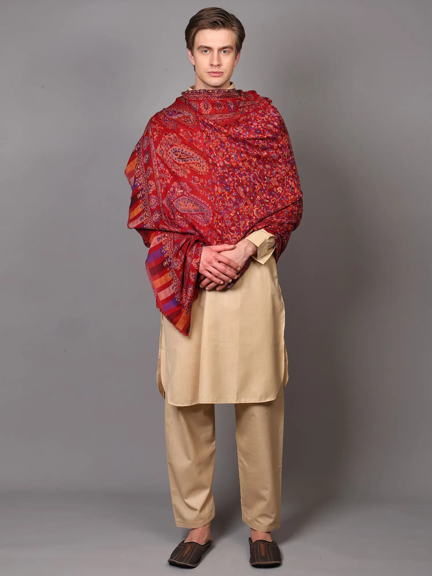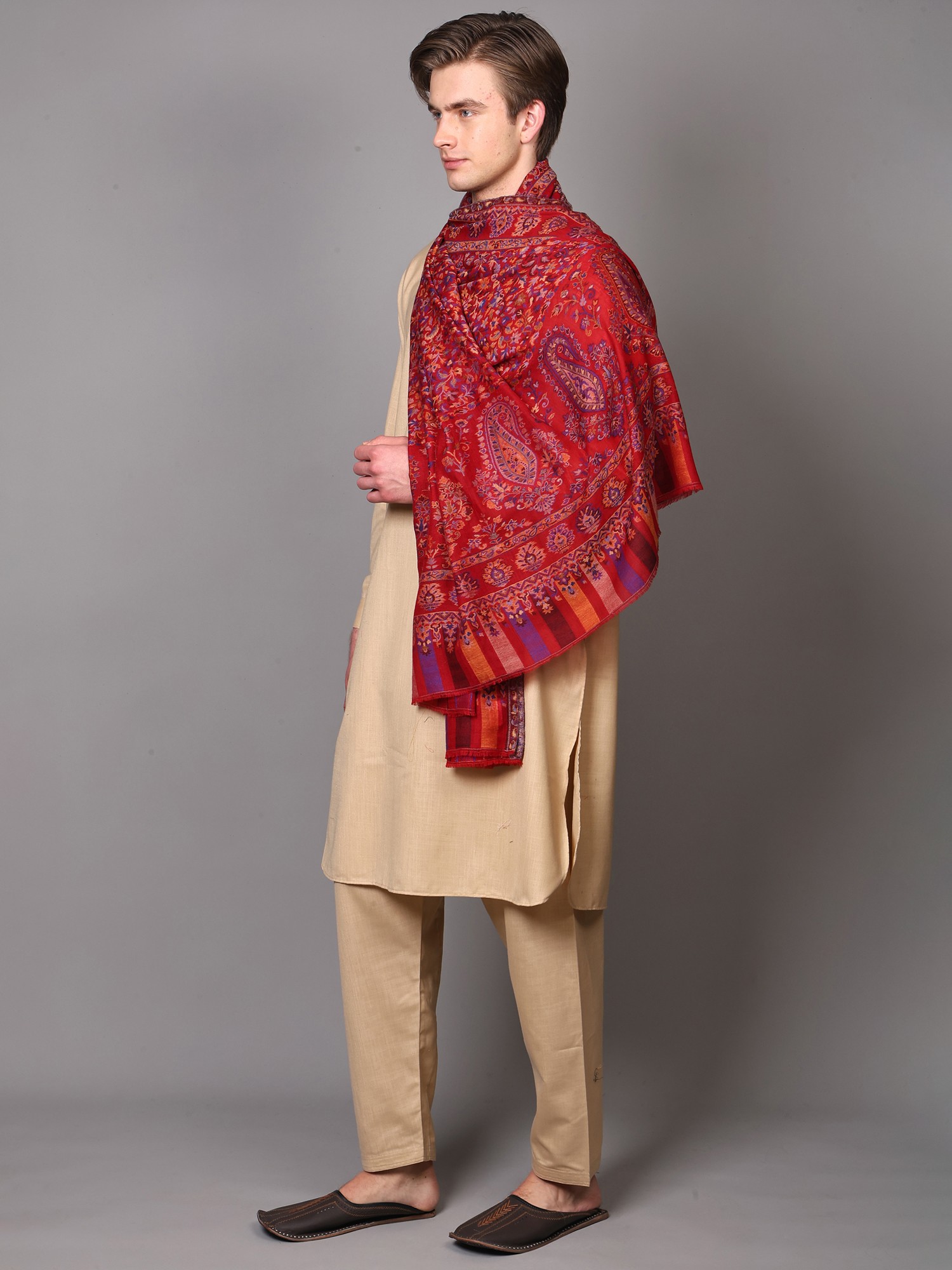 Men's Kani Jamawr Shawl with Woven Paisleys and Flowers from Amritsar