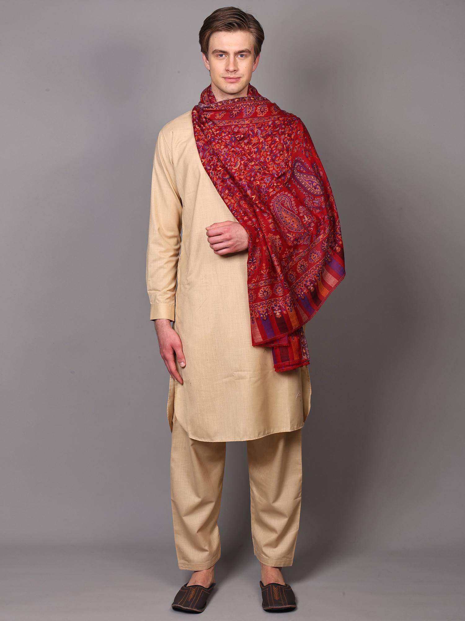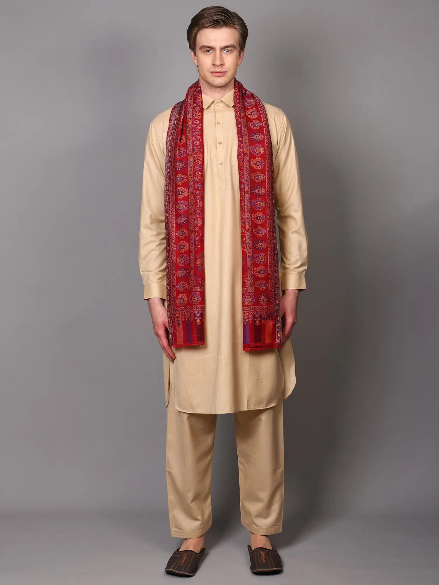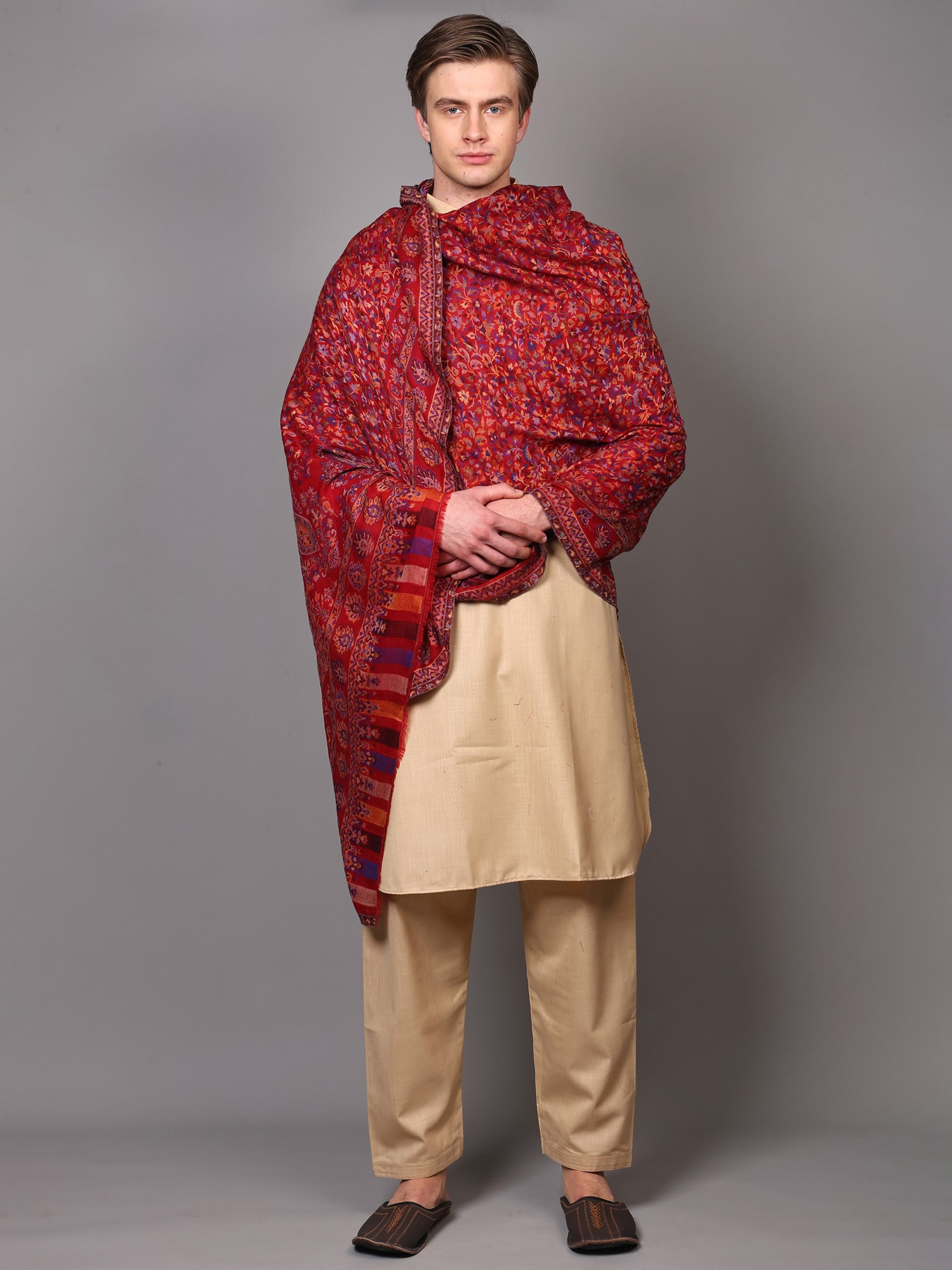 Men's Kani Jamawr Shawl with Woven Paisleys and Flowers from Amritsar