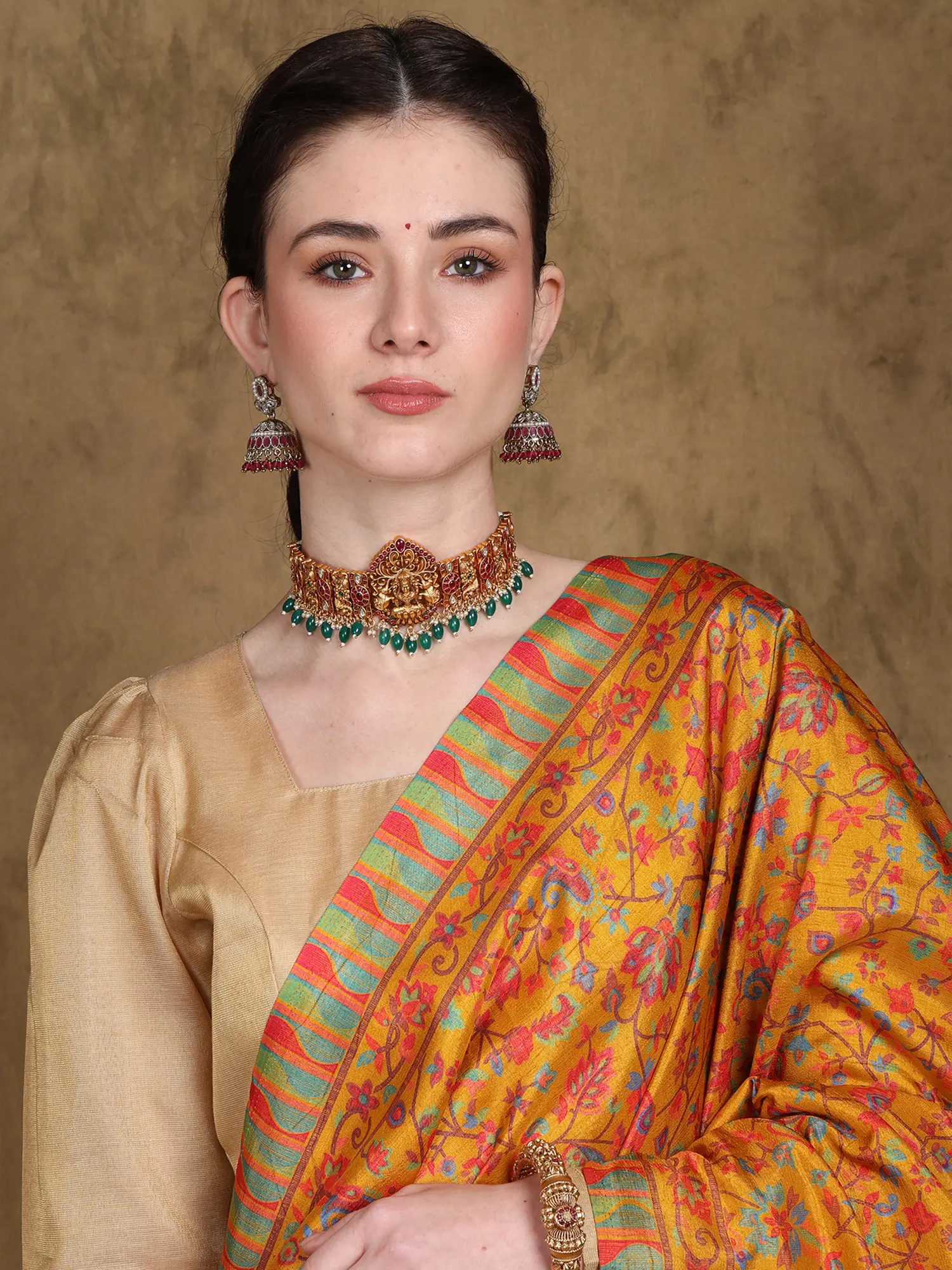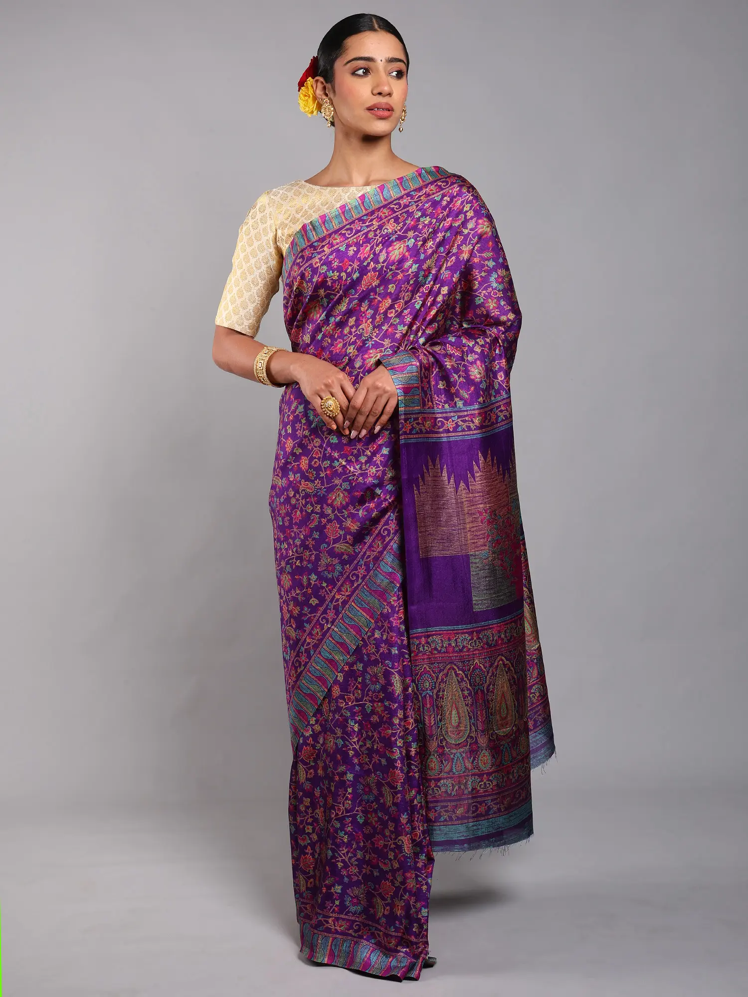 Kani Saree with Printed Multicolor Floral Paisley Vines