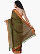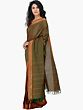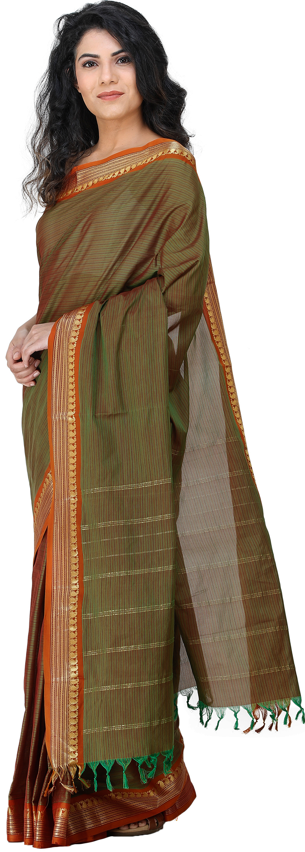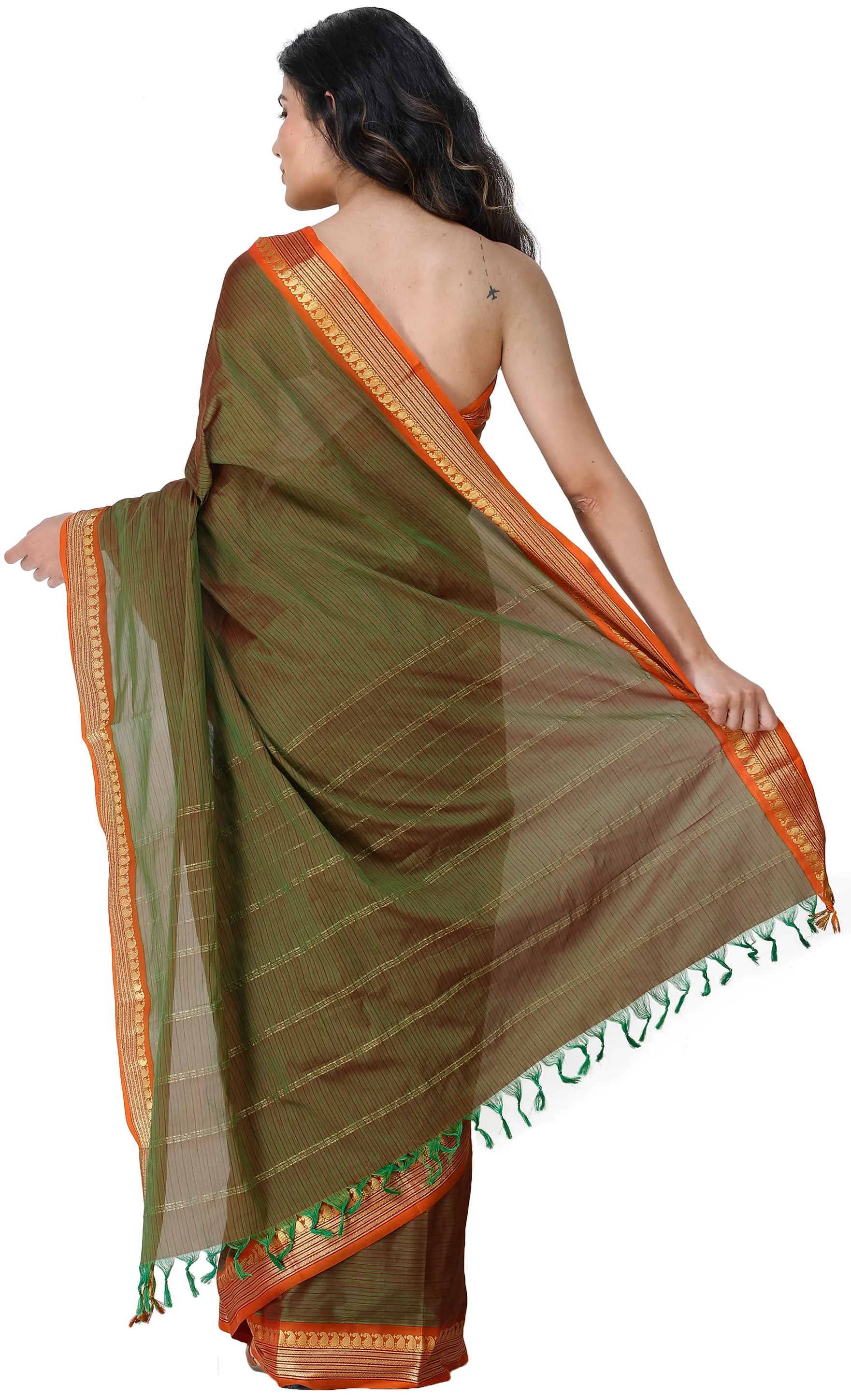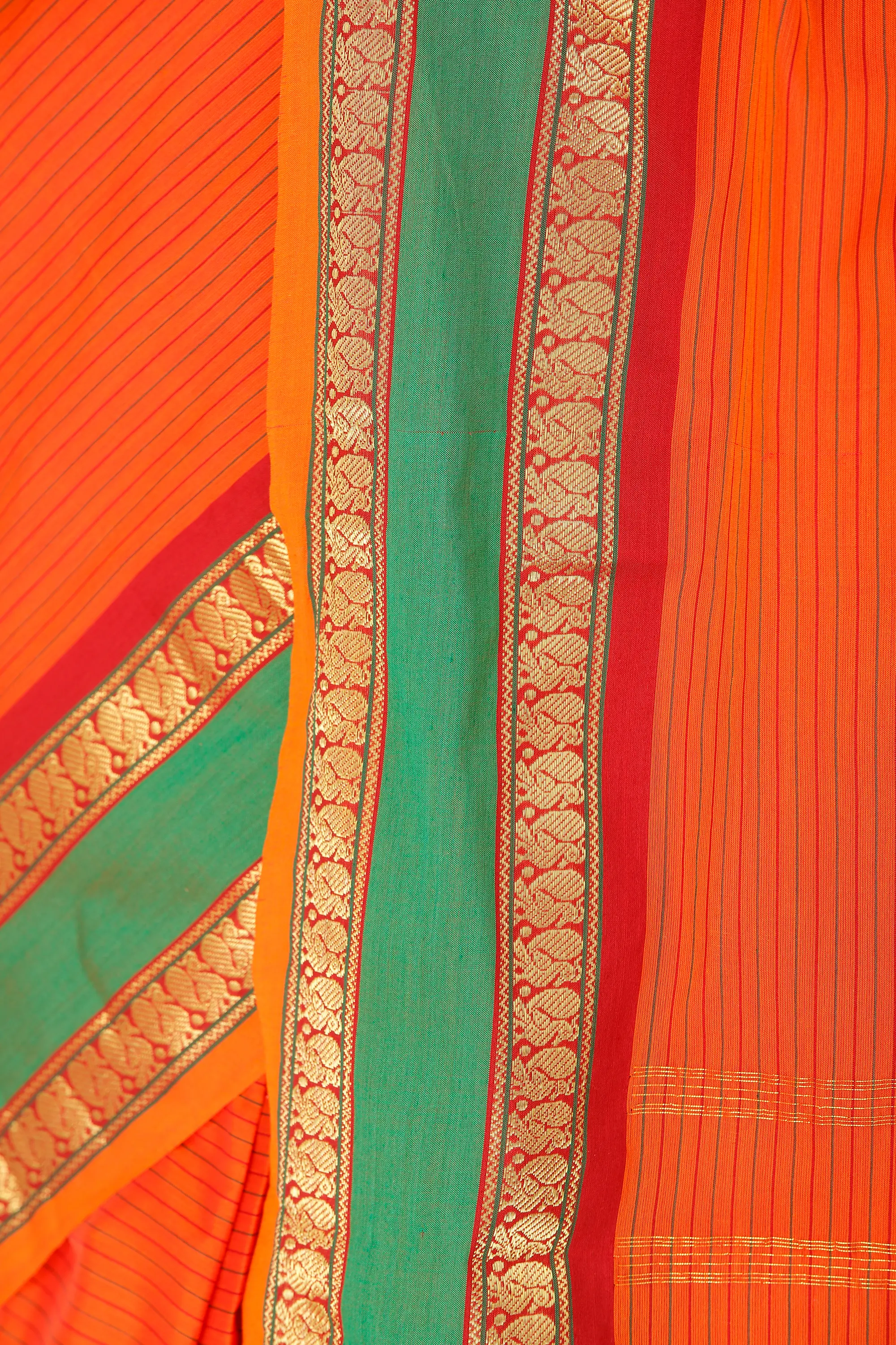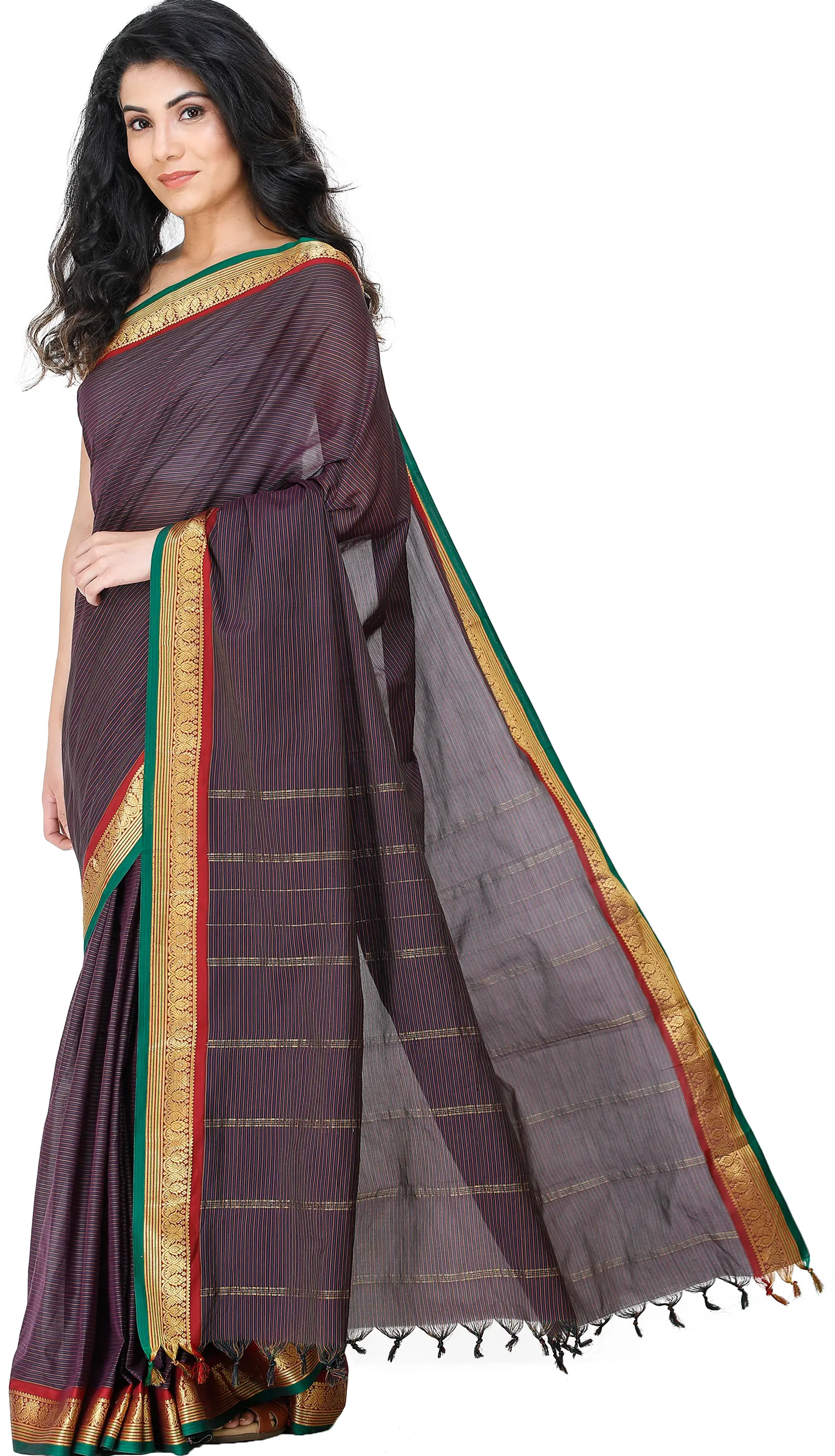 Kanji-Cotton Saree from Chennai with Zari-Woven Animals on Border and Pin-Stripes