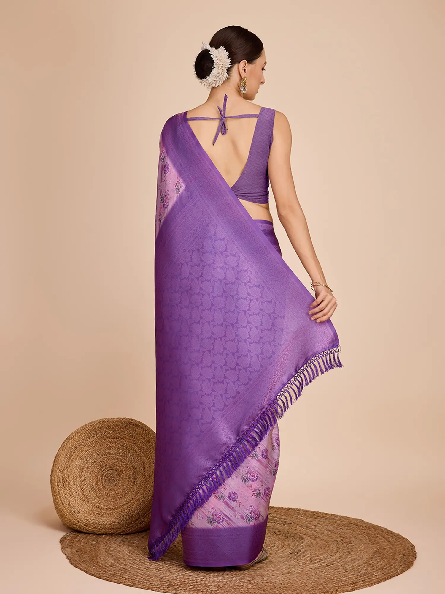 Kanjivaram Silk Floral Design Saree With Broad Border And Blouse