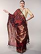 Tawny-Port Pure Cotton Ikat Handloom Saree from Sambhalpur with Woven Fish-Peacocks Wide Border