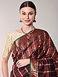 Black-Olive Handloom Saree from Paramakudi with Woven Pair of Peacocks Border and Stripes Pallu
