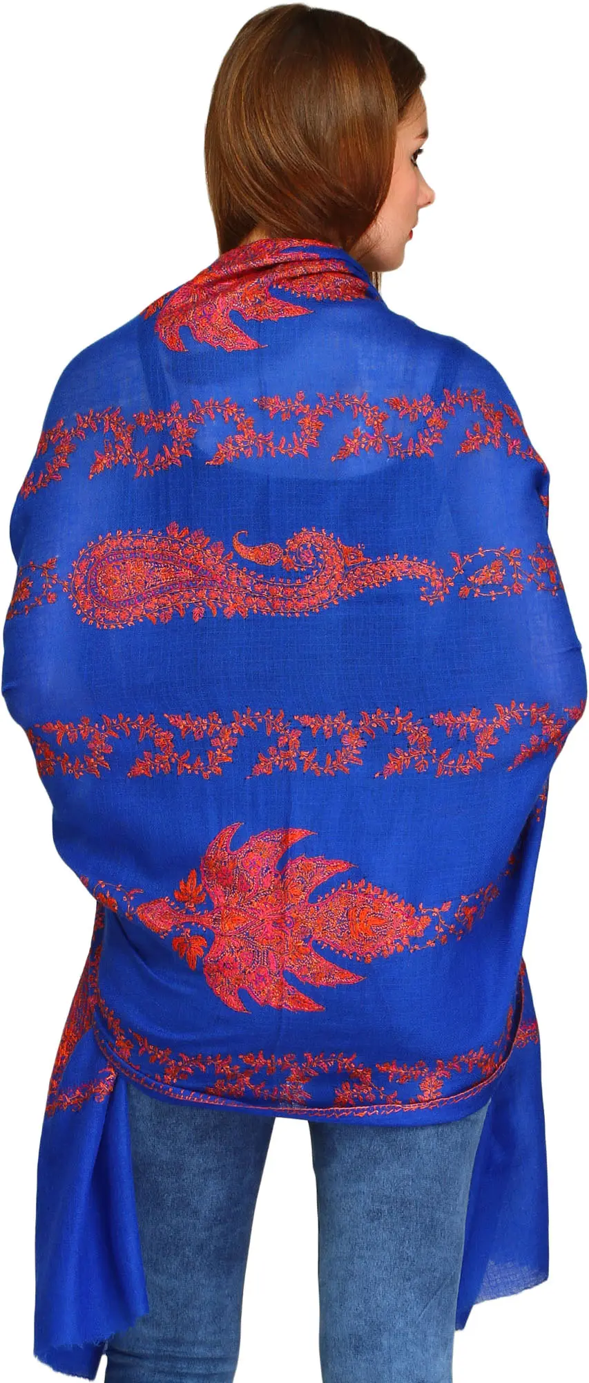 The generous dimensions of this shawl offer incredible versatility. Whether you choose to elegantly drape it over your shoulders for a formal occasion, wrap it around your neck for added warmth and style on a casual outing, or even use it as a decorative accent piece, its beauty remains undeniable. The vibrant blue provides a striking backdrop for the detailed embroidery, making it a statement piece that can instantly elevate even the simplest of outfits. Pair it with a solid-colored dress, jeans and a sweater, or even as a sophisticated layer over formal wear. Its adaptability ensures it will become a cherished staple in your wardrobe, lending a touch of refined grace to every look. ––––––––––––––––––––