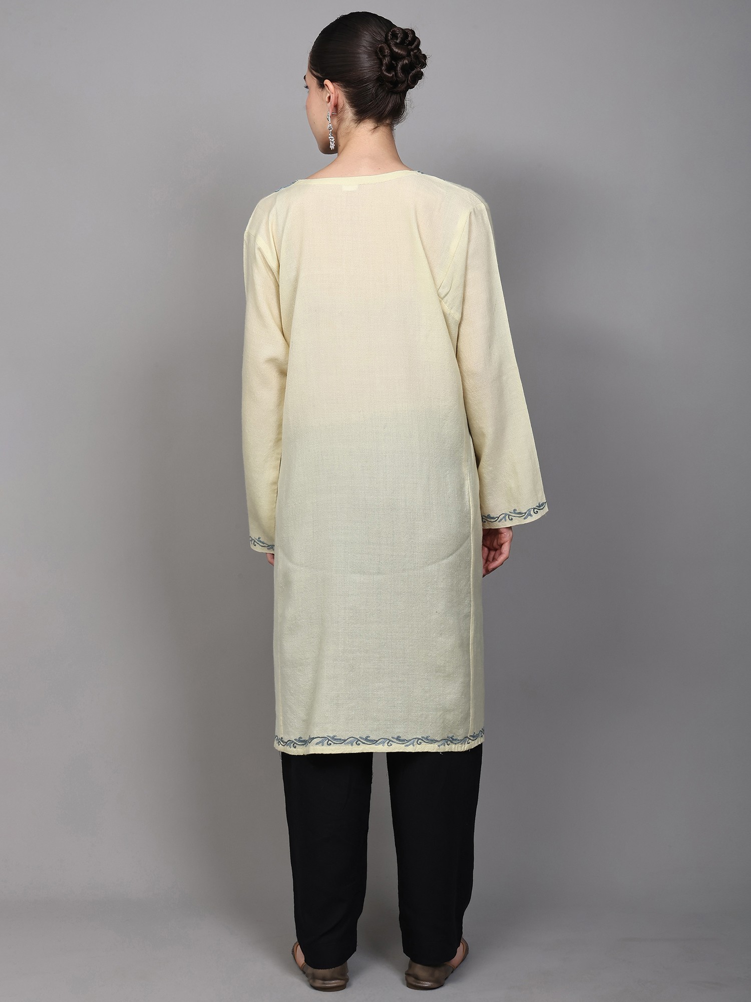 Blue-Heron Pure Wool Kashmiri Phiran with Aari Embroidered Floral Butta