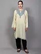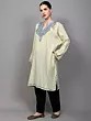 White-Paper Aari Embroidered Paisleys Motifs Pure Wool Phiran from Kashmir