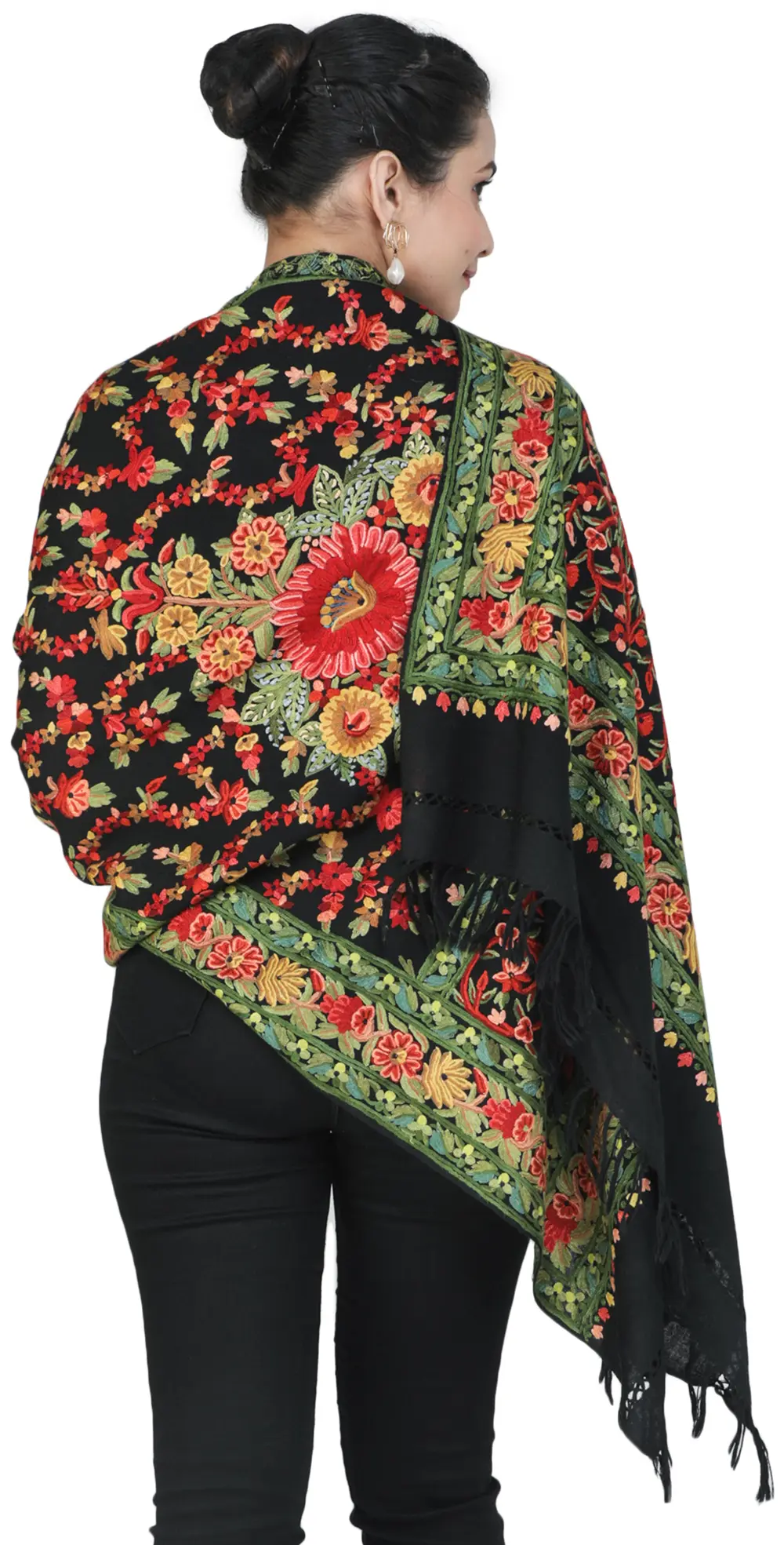 This Kashmiri Stole is a masterpiece, reflecting the age-old heritage of Kashmiri craftsmanship. Skilled artisans have meticulously hand-embroidered multicolored flowers, creating a vibrant symphony of colors on a canvas of warmth and elegance. The tradition of this design dates back centuries, making it a true representation of timeless artistry. Today, it remains an embodiment of Kashmir's cultural grandeur and an ideal choice for those who seek to intertwine heritage with contemporary fashion.
