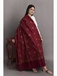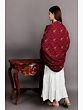 This gorgeous piece is a red frame style pure wool shawl enhanced with exquisite Kashmiri Sozni embroidered floral vines in the multicolor thread. The artistic multiple gold floral effect created on the red base with Kashmiri motifs is hand embroidered by the expert craftsmen in Kashmir. With the help of a specialized needle in Kashmiri sozni and a paper machine with fine threads in the yellow shade, the graceful floral motifs on the red base are hand embroidered. Due to the fine needlework of Kashmiri sozni on this long soft shawl, it radiates unmatchable vibes when it comes to being luxurious and stylish.