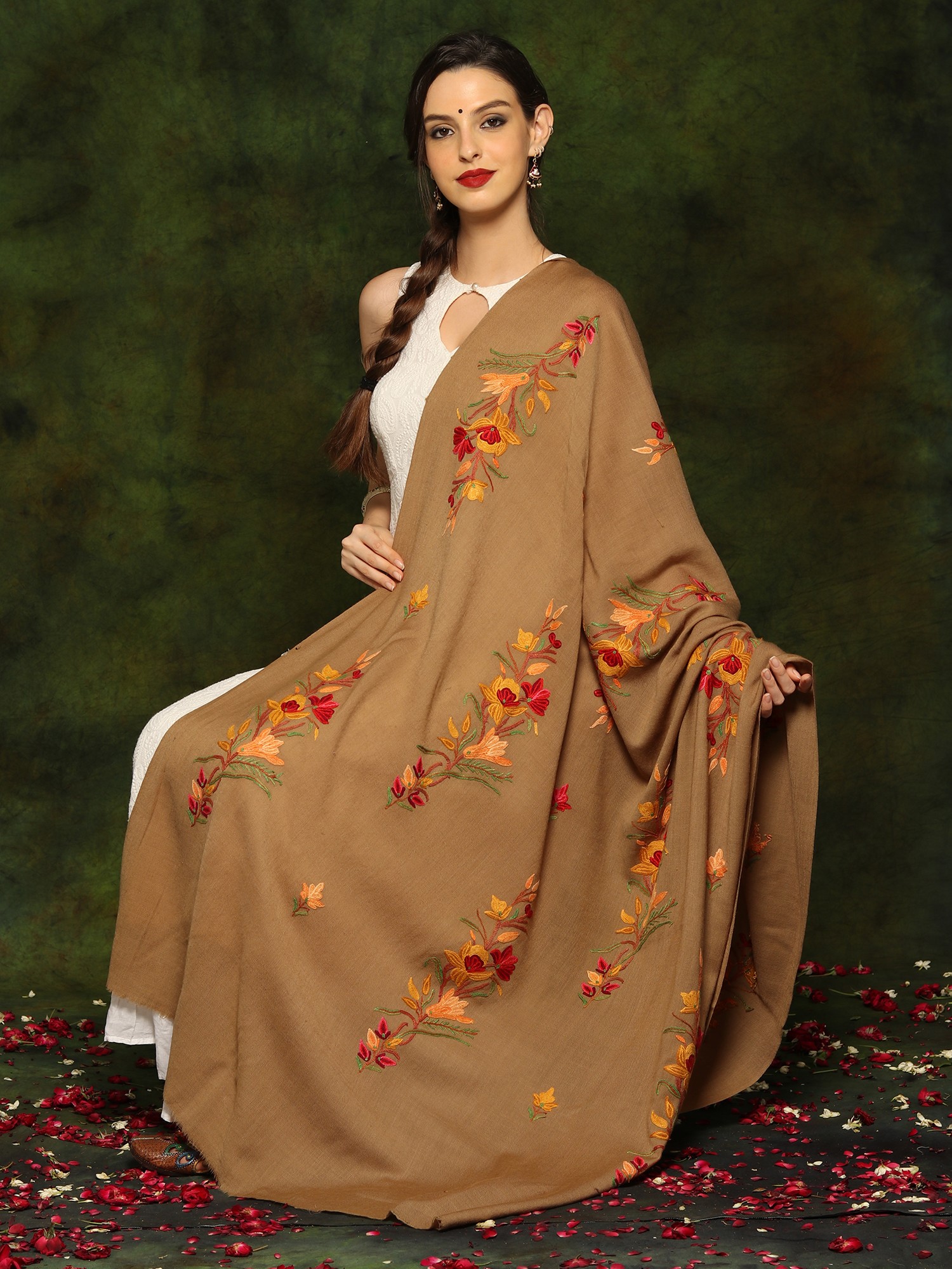 Pure Woolen Shawl with Detailed Floral Threadwork All Over