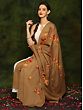 Affogato Pashmina Shawl from Kashmir with Heavy Sozni Embroidered Paisley and Flowers