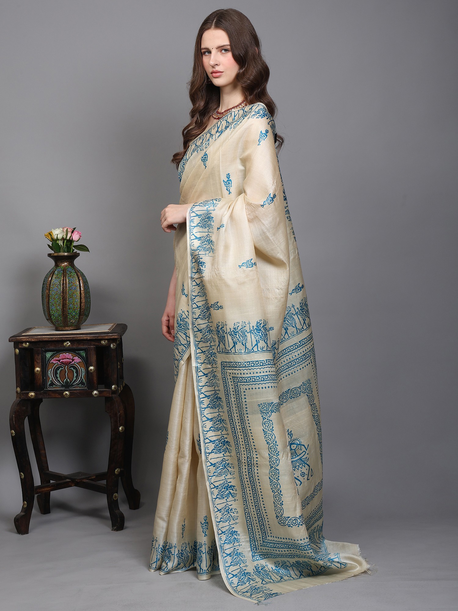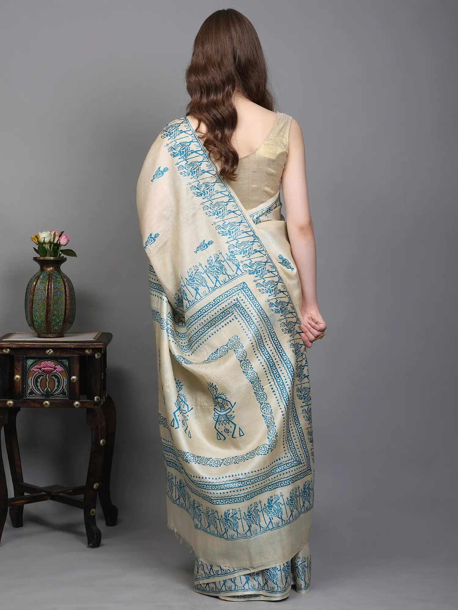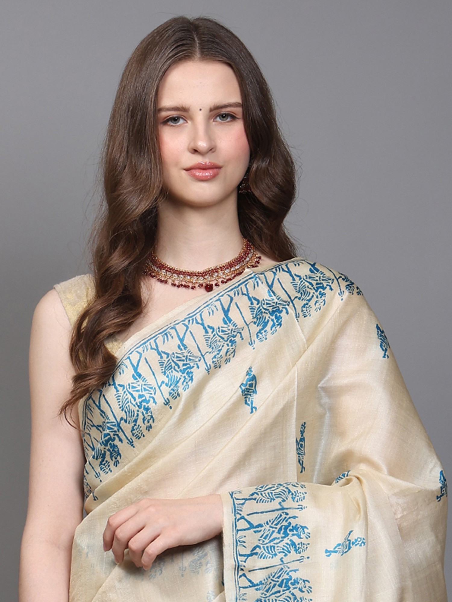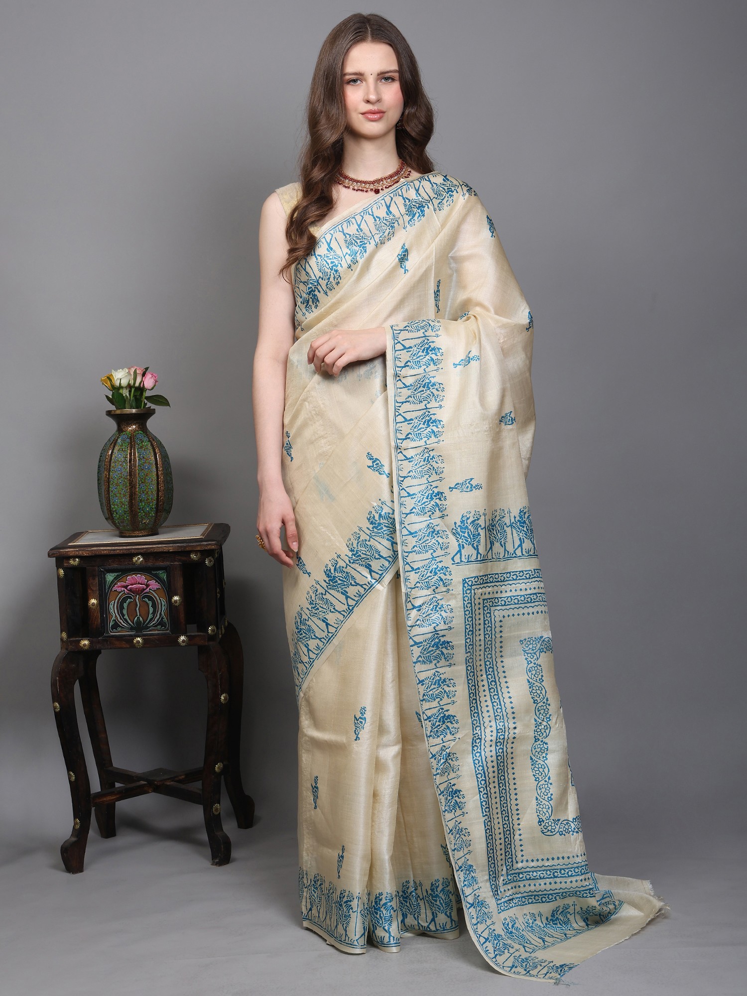 Dhakai Sari from Bengal with Leaf and Flowers All-Over