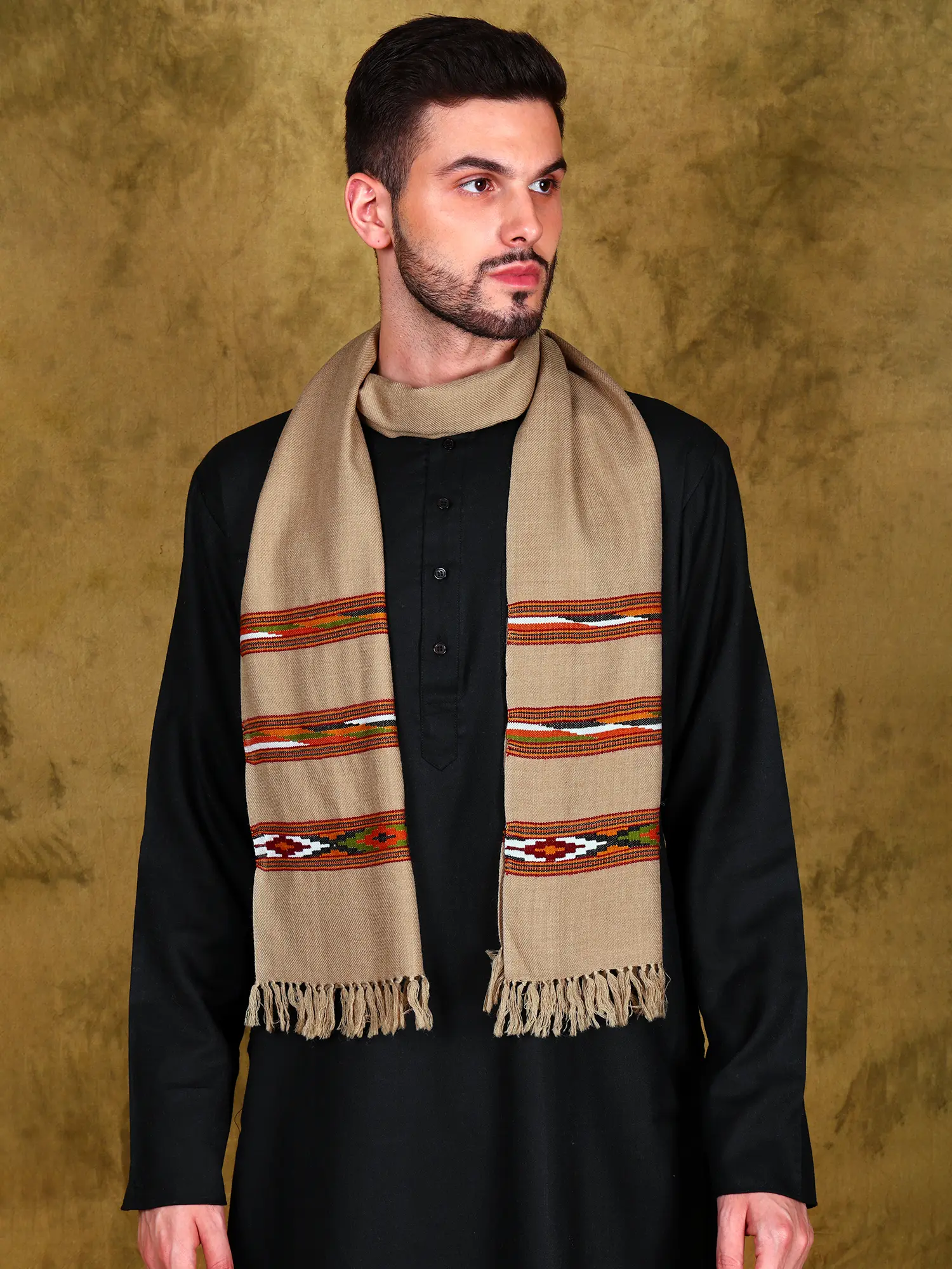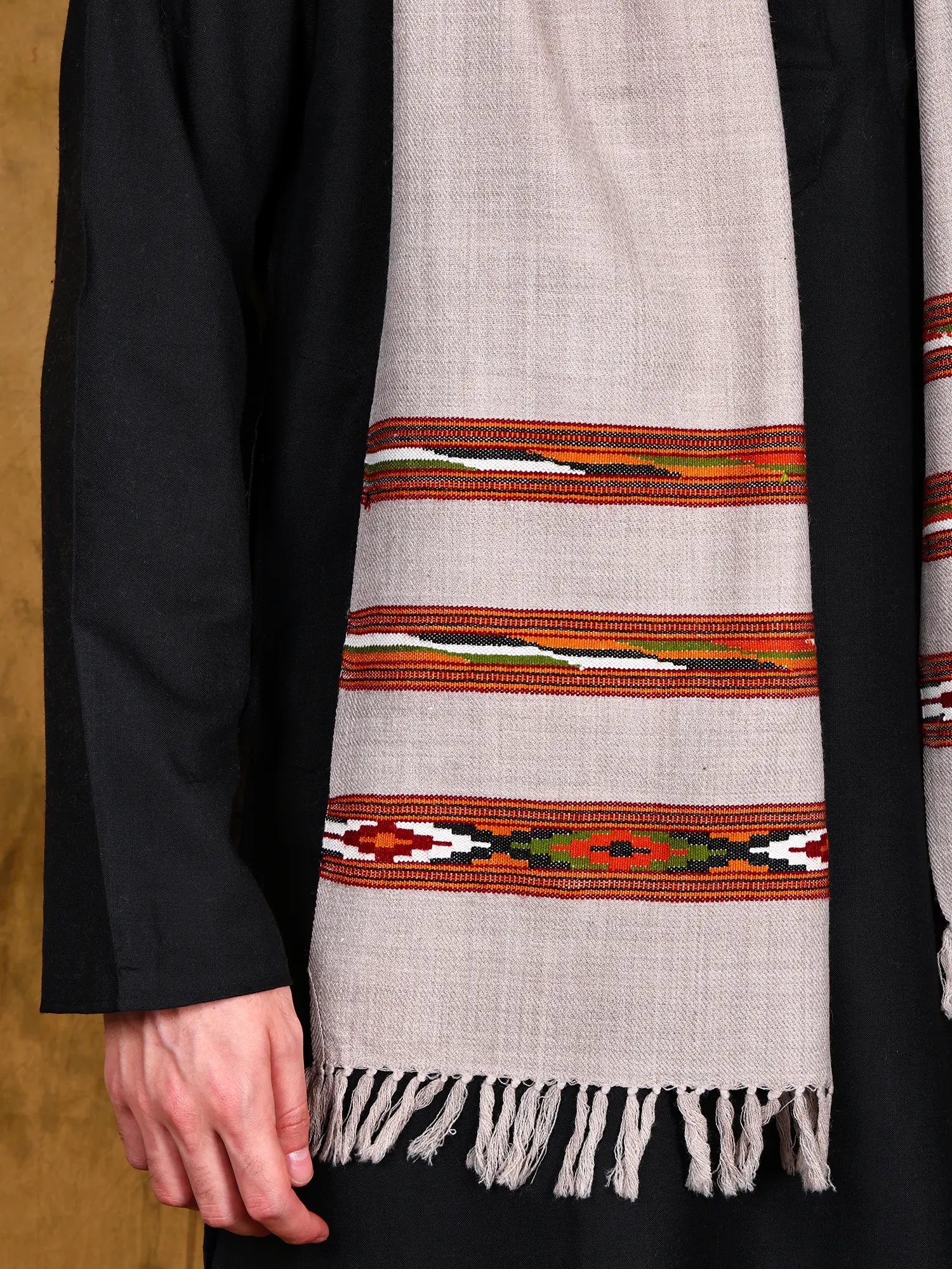 Woodland-Gray Kullu Palla Shawl with Kinnauri Woven Triple Border (Unisex)