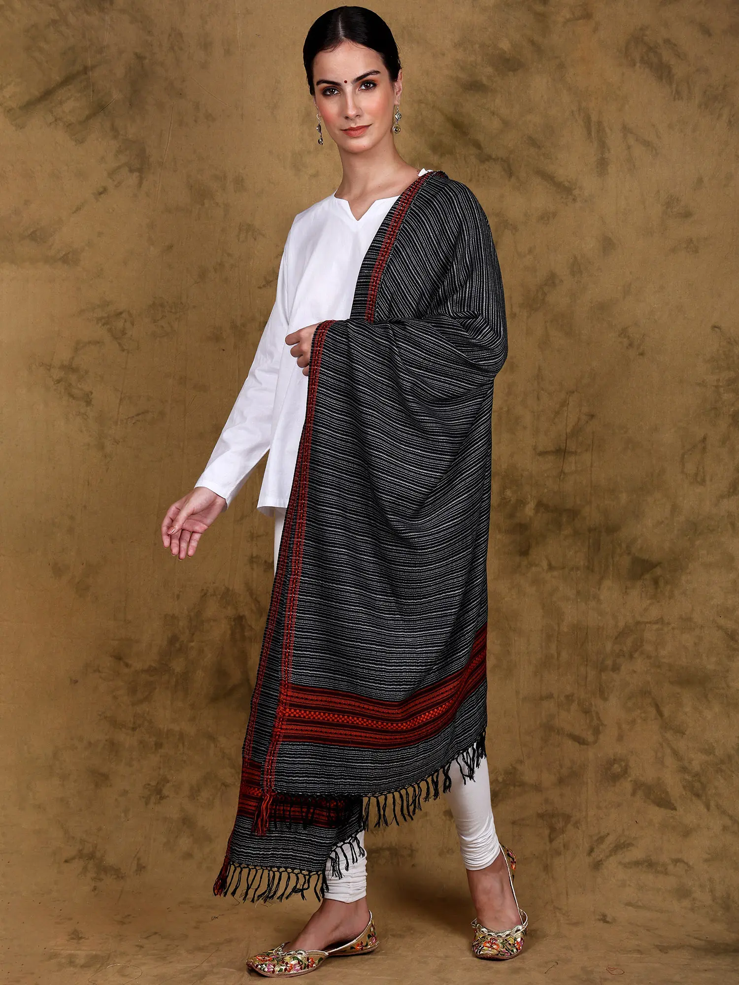 Kullu Scarf with Kinnauri Woven Triple Border (Unisex)