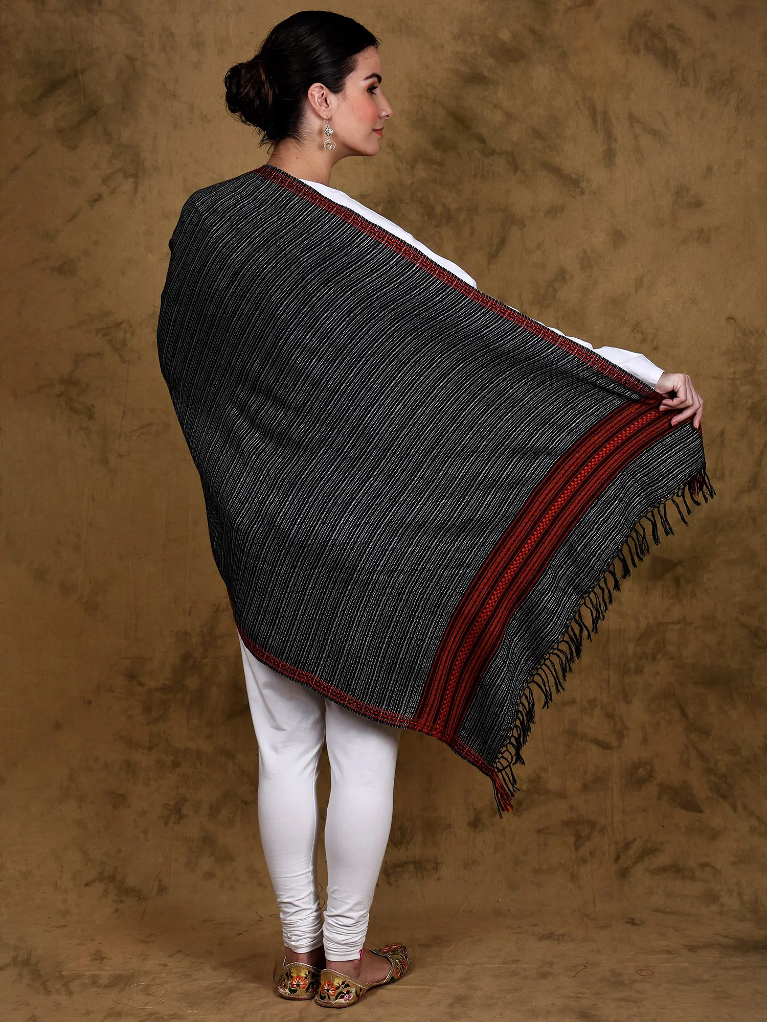 Woodland-Gray Kullu Palla Shawl with Kinnauri Woven Triple Border (Unisex)