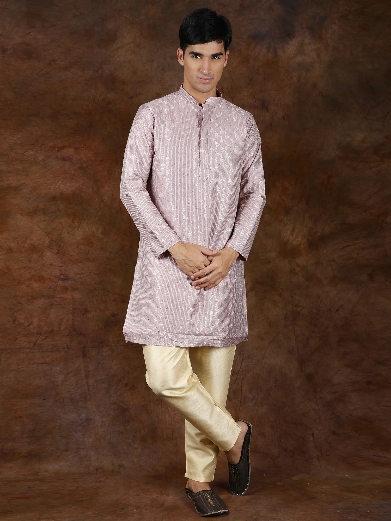 Orchid-Ice Kurta Pajama Set with Herringbone Weave