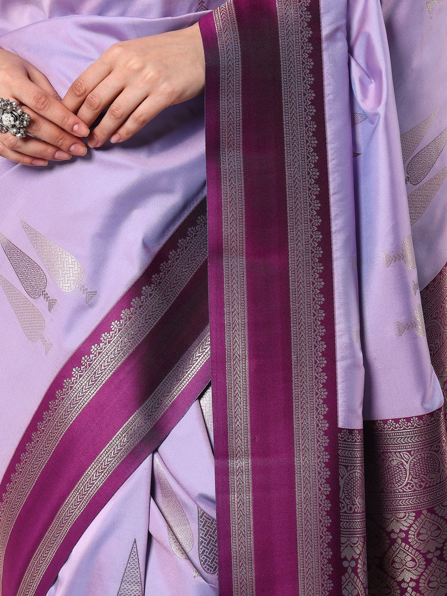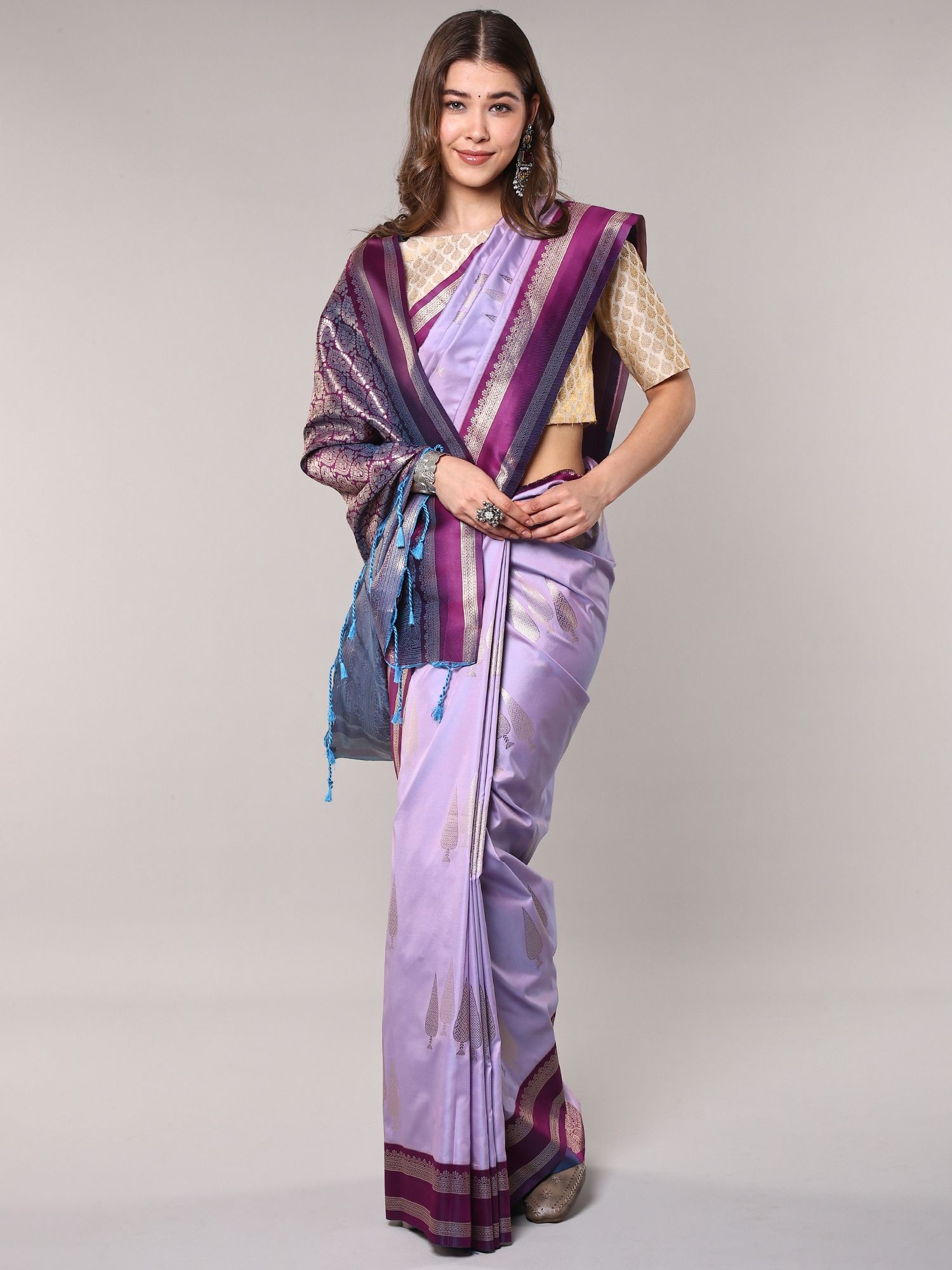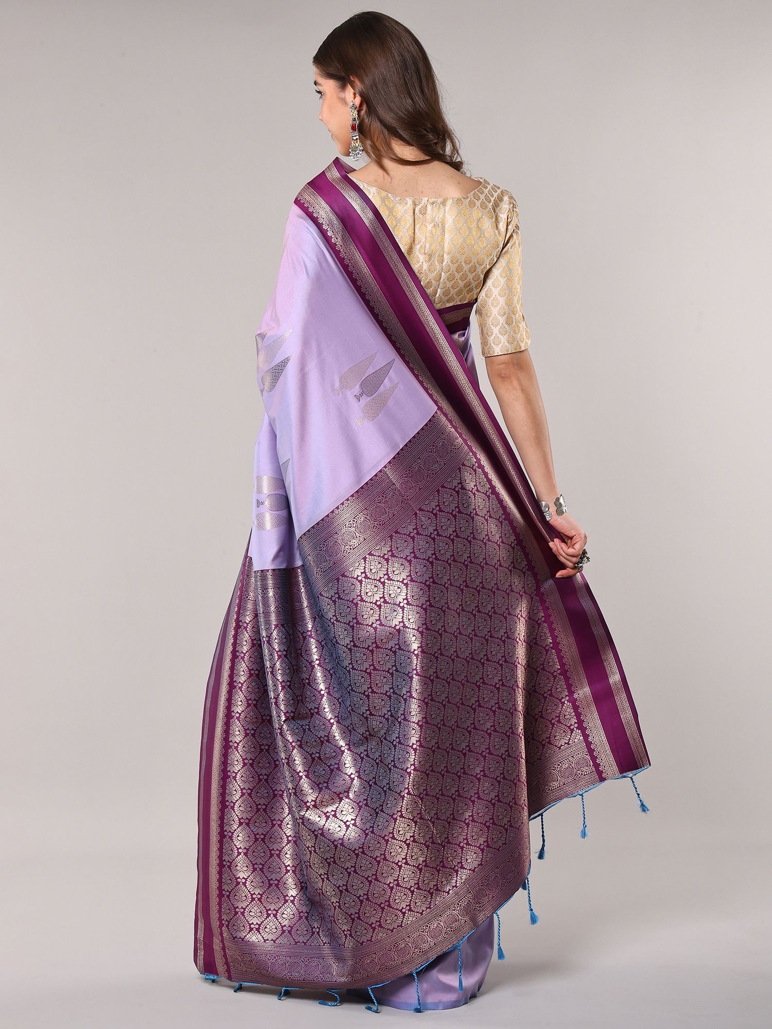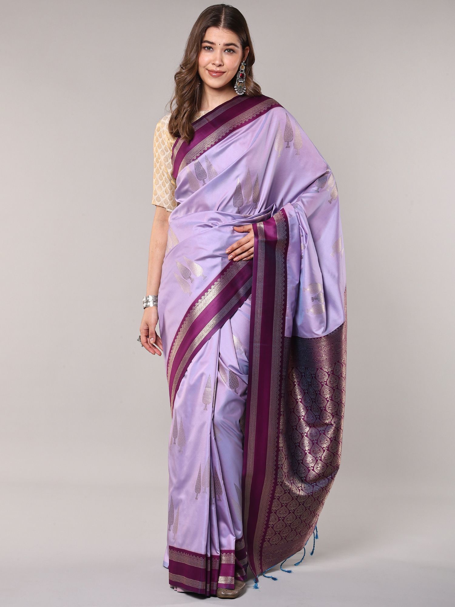 Lavender-Frost Saree with Zari Woven Coniferous Trees Motifs and Contrast Border from Bangalore
