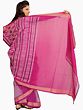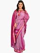 Fuchsia-Pink Cotton Saree with Floral Print and Zari Border from Tamil Nadu