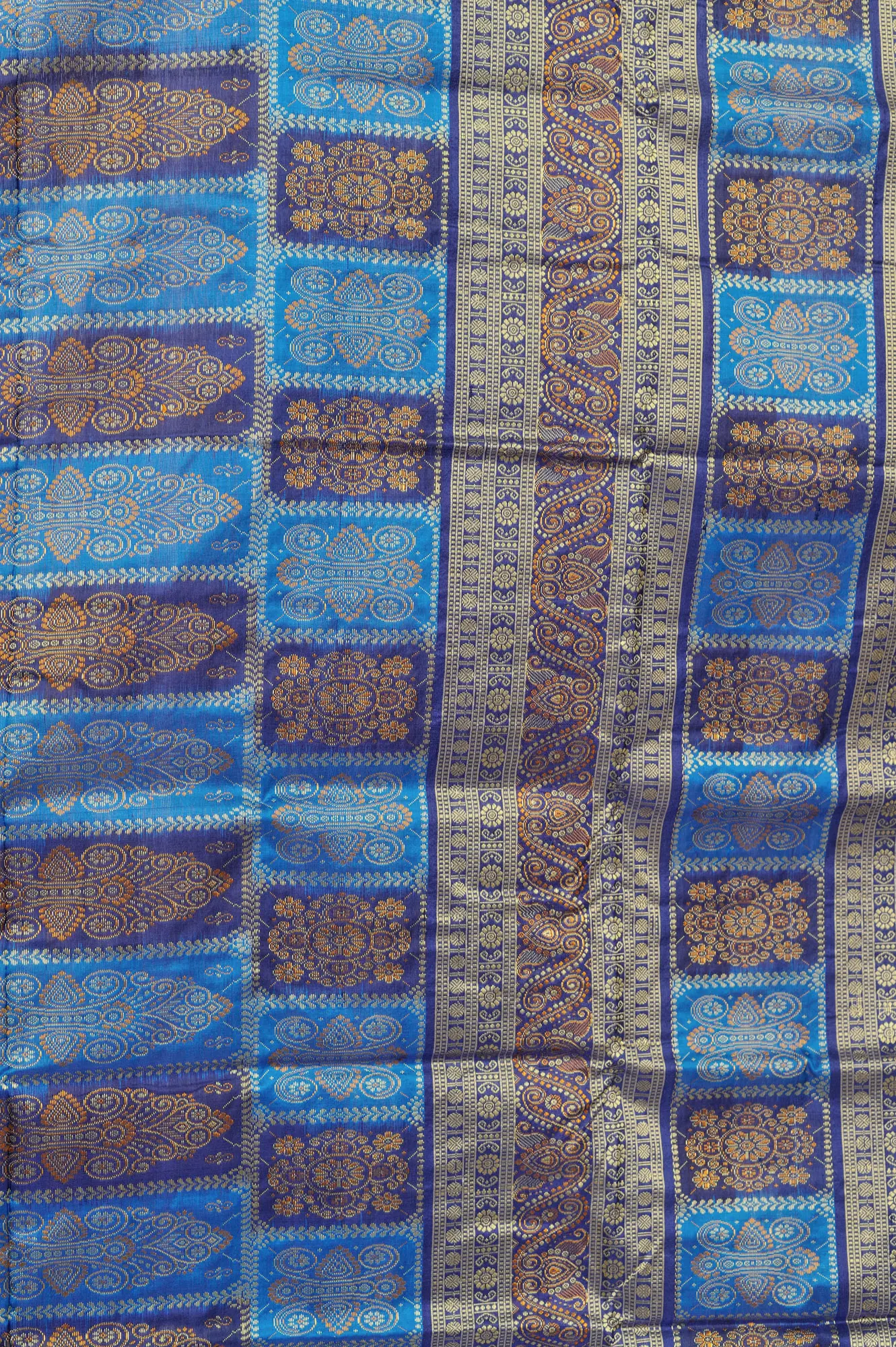 Brilliant-Blue Bomkai Handloom Saree from Odisha with Woven Bootis and Box Pallu