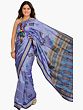 Lavender-Violet Bomkai Sari from Orissa with Woven Motifs and Rudraksha Border