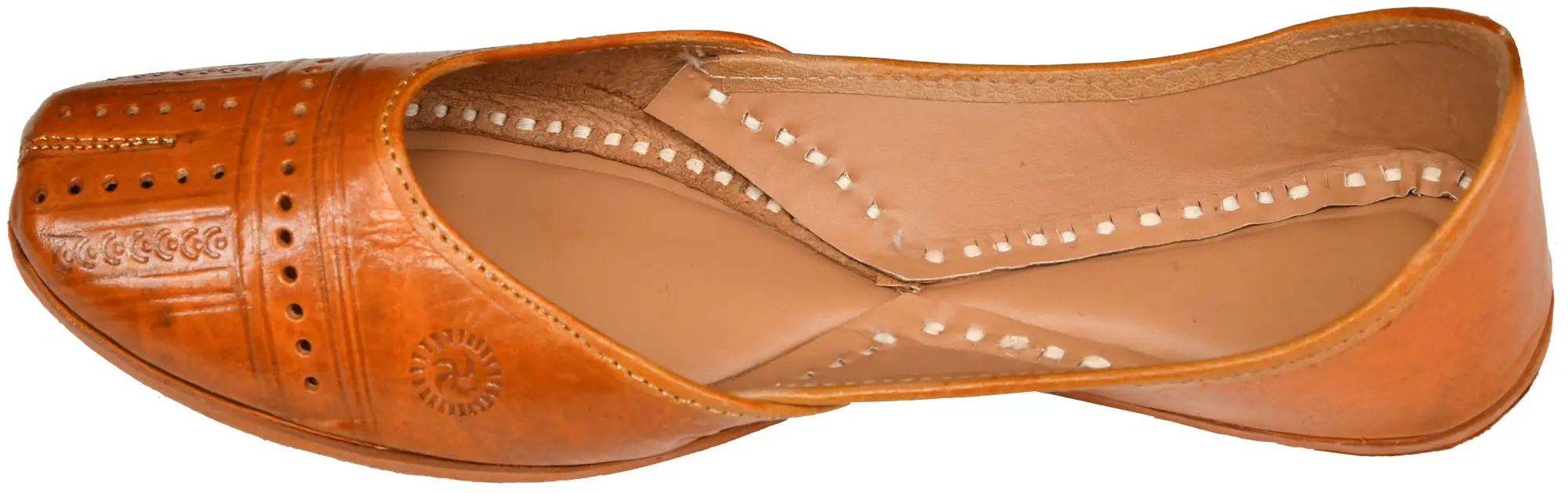 These leather mojari flats are the epitome of versatile footwear. Their sophisticated design makes them an ideal choice for dressing up any outfit, whether you're attending a festive gathering, a cultural event, or simply want to add a touch of refined elegance to your everyday look. Pair them with traditional Indian attire like kurtis and salwar kameez for an authentic and stylish ensemble. They also transition seamlessly to contemporary fashion, complementing dresses, skirts, or even tailored trousers. The warm brown shade acts as a neutral, making it easy to match with a wide array of colors and patterns. Embrace the comfort and timeless beauty of these handcrafted leather mojari flats and step out with confidence and grace.
