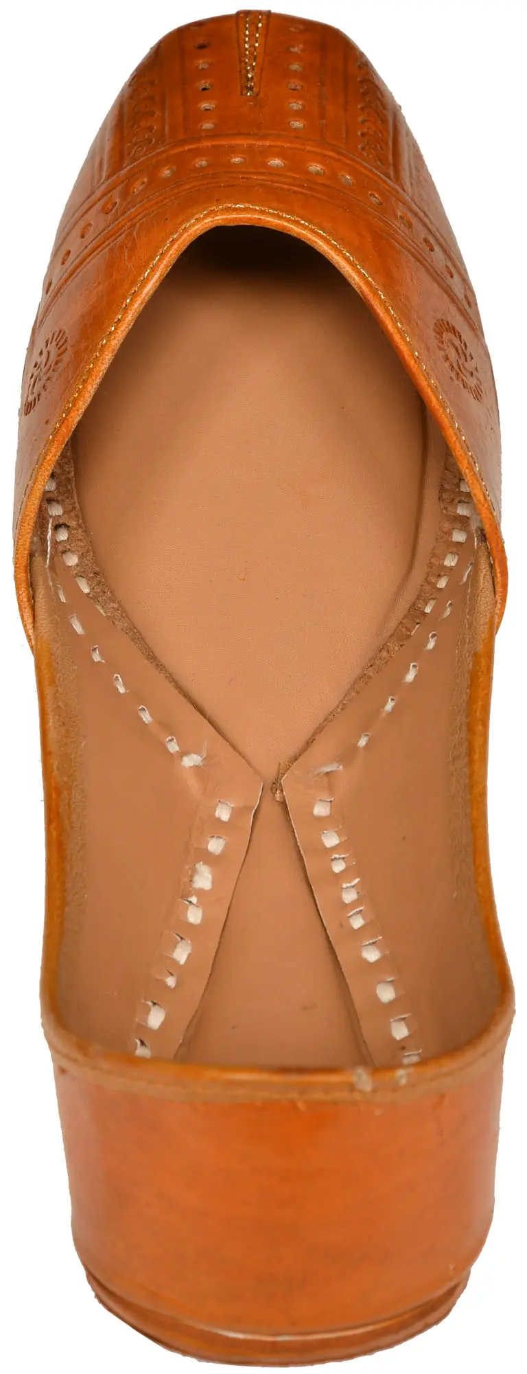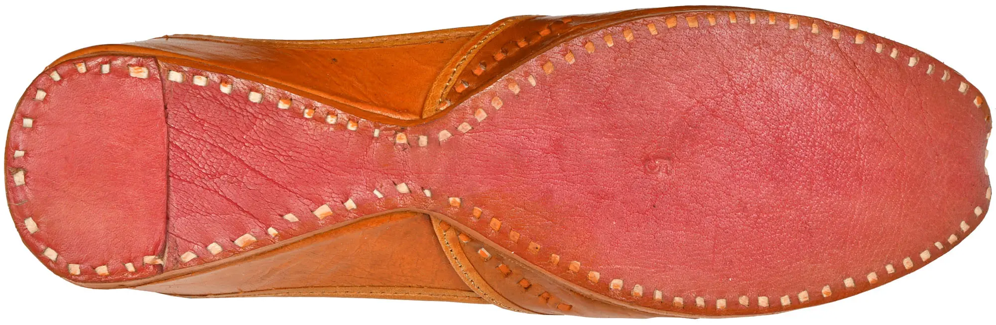 Discover the perfect blend of traditional artistry and modern comfort with these exquisite leather mojari flats. Crafted from pure, supple leather in a rich, warm brown hue, these shoes are a testament to meticulous craftsmanship. The classic mojarri silhouette, a beloved style for centuries, is elevated by intricate detailing that speaks to a heritage of skilled artisans.