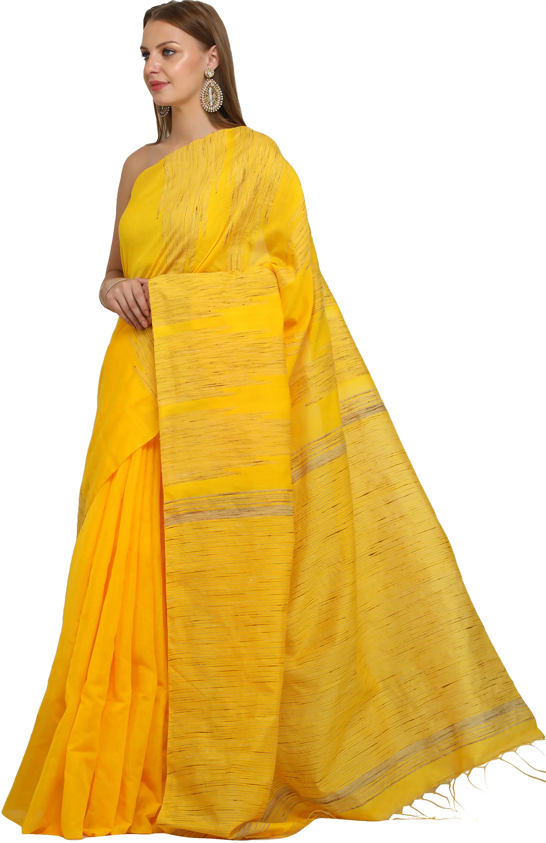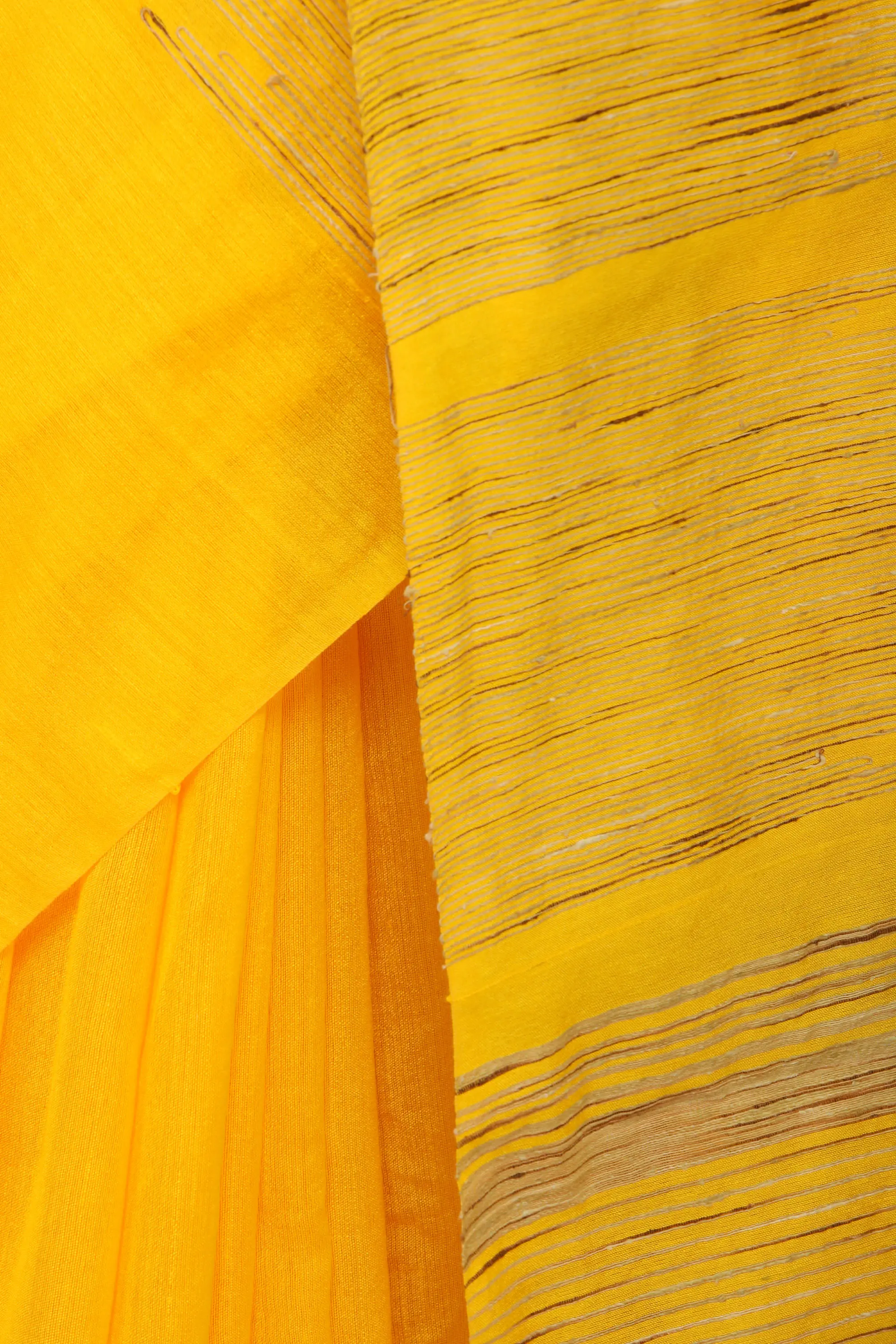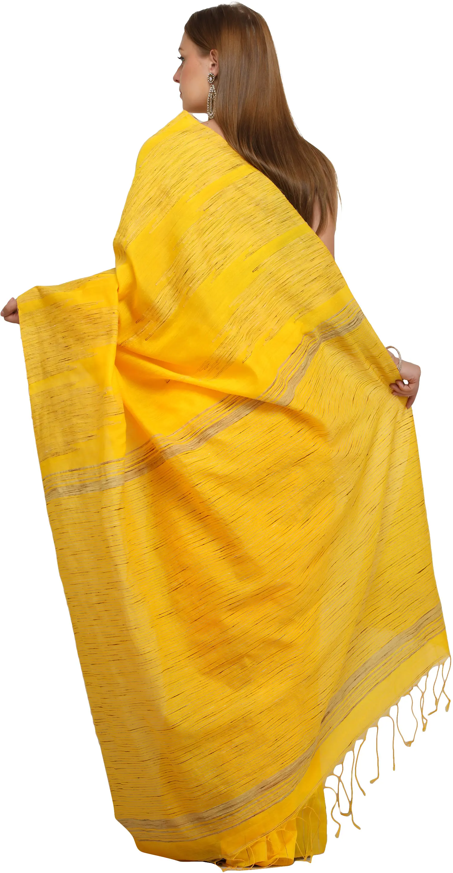 Lemon-Chrome Purbasthali Sari from Bengal with Jute Weave