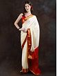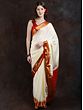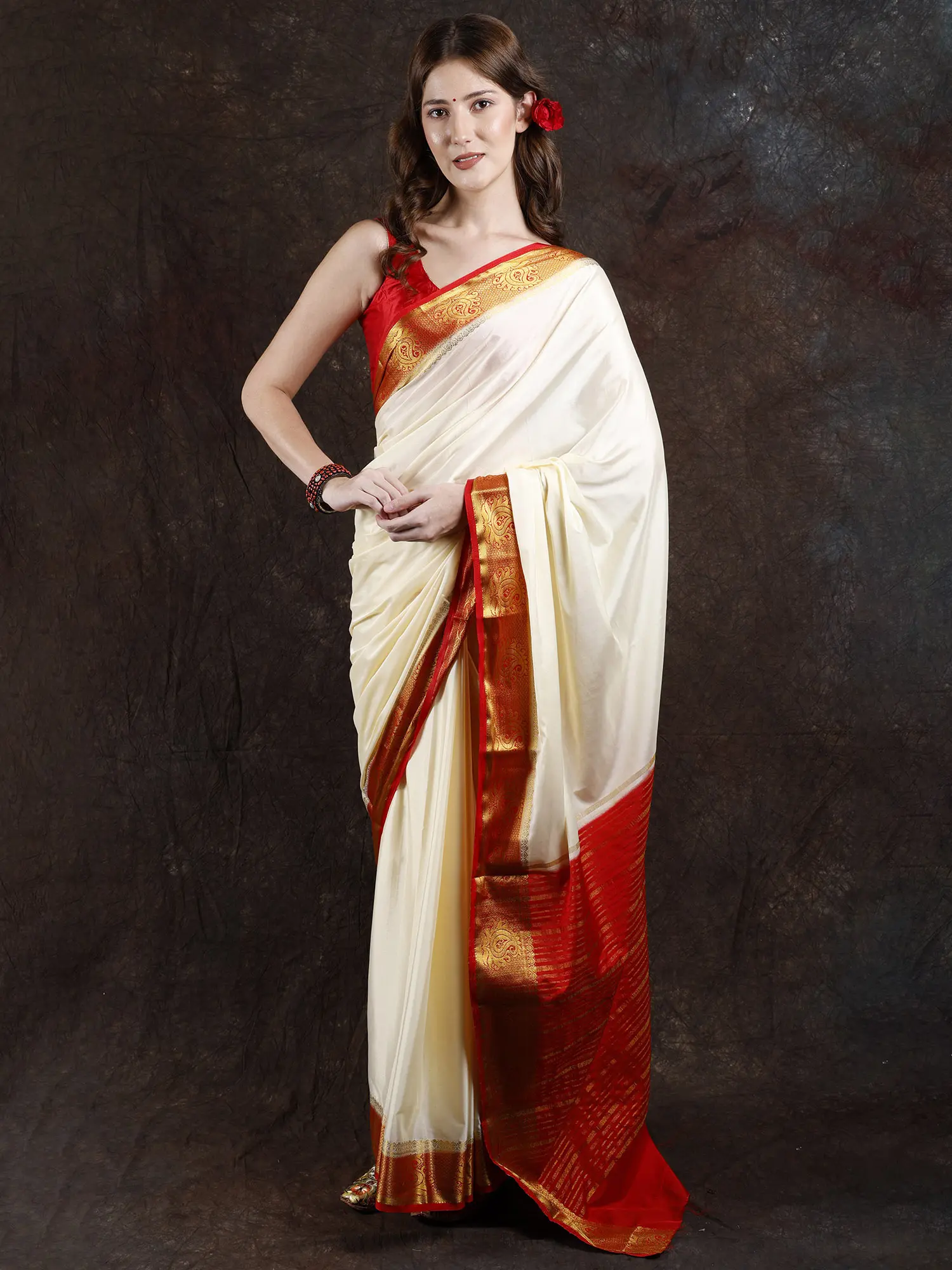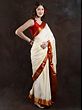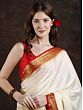Ivory Kasavu Puja Sari from Kerala with Golden Border