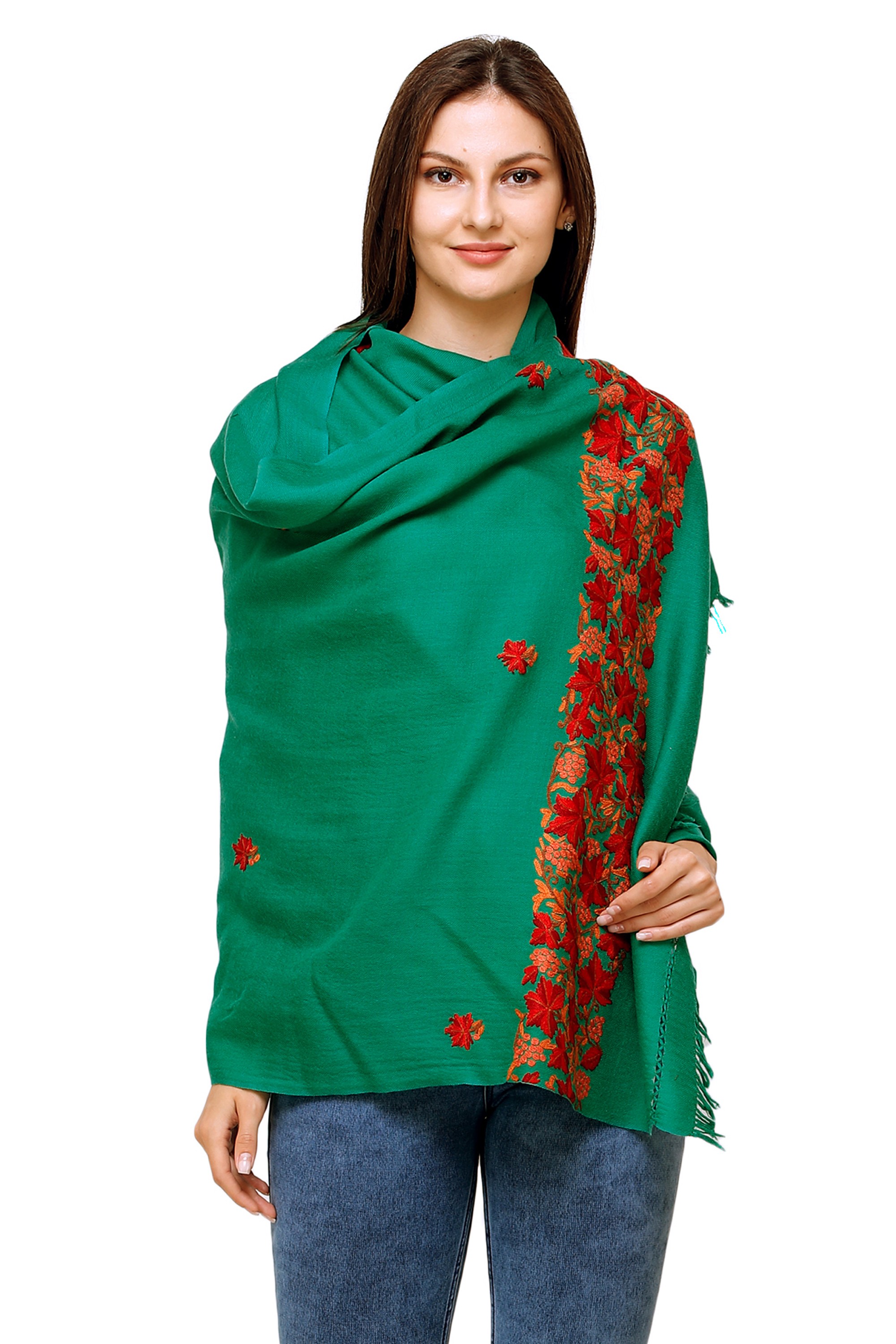 Greener-Pastures Kashmiri Stole with Aari-Hand Embroidered Giant Flowers