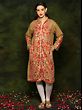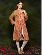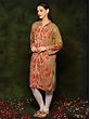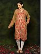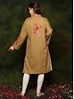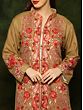 Light Brown Woolen Long Jacket with Detailed Floral and Paisley Red Aari Embroidery From Kashmir