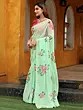 Light-Green Tabby Silk Saree With Artistic Floral Print Handcrafted Detailing Premium Designer Ethnic Statement Drape