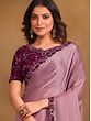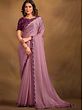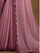 Light-Magenta Satin Silk Plain Saree With Blouse And Floral Border