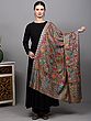 Moonless-Night Pure Pashmina Shawl with Heavily Detailed Floral Multi-coloured Kalamkari Embroidery