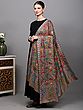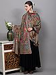 Green-Tint Kalamkari Aari Embroidered Stole with Printed Phool Bail from Punjab