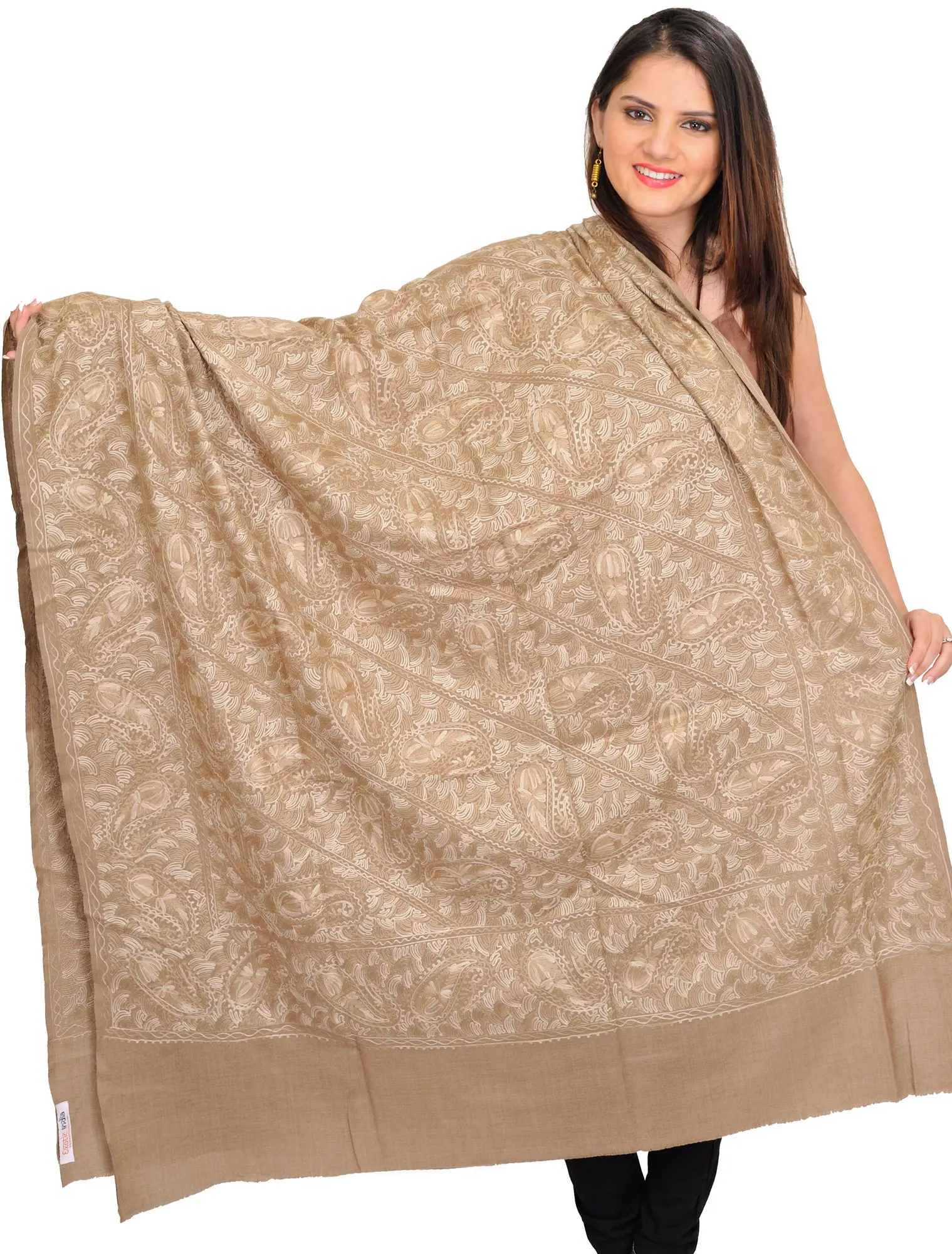 Wool Shawl with All-over Aari-Embroidered Giant Paisleys from Amritsar